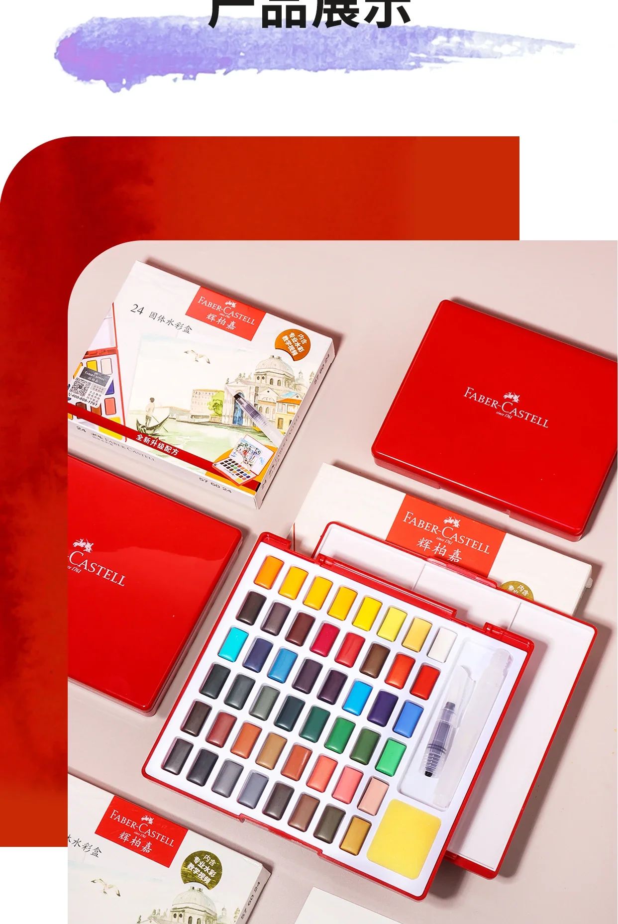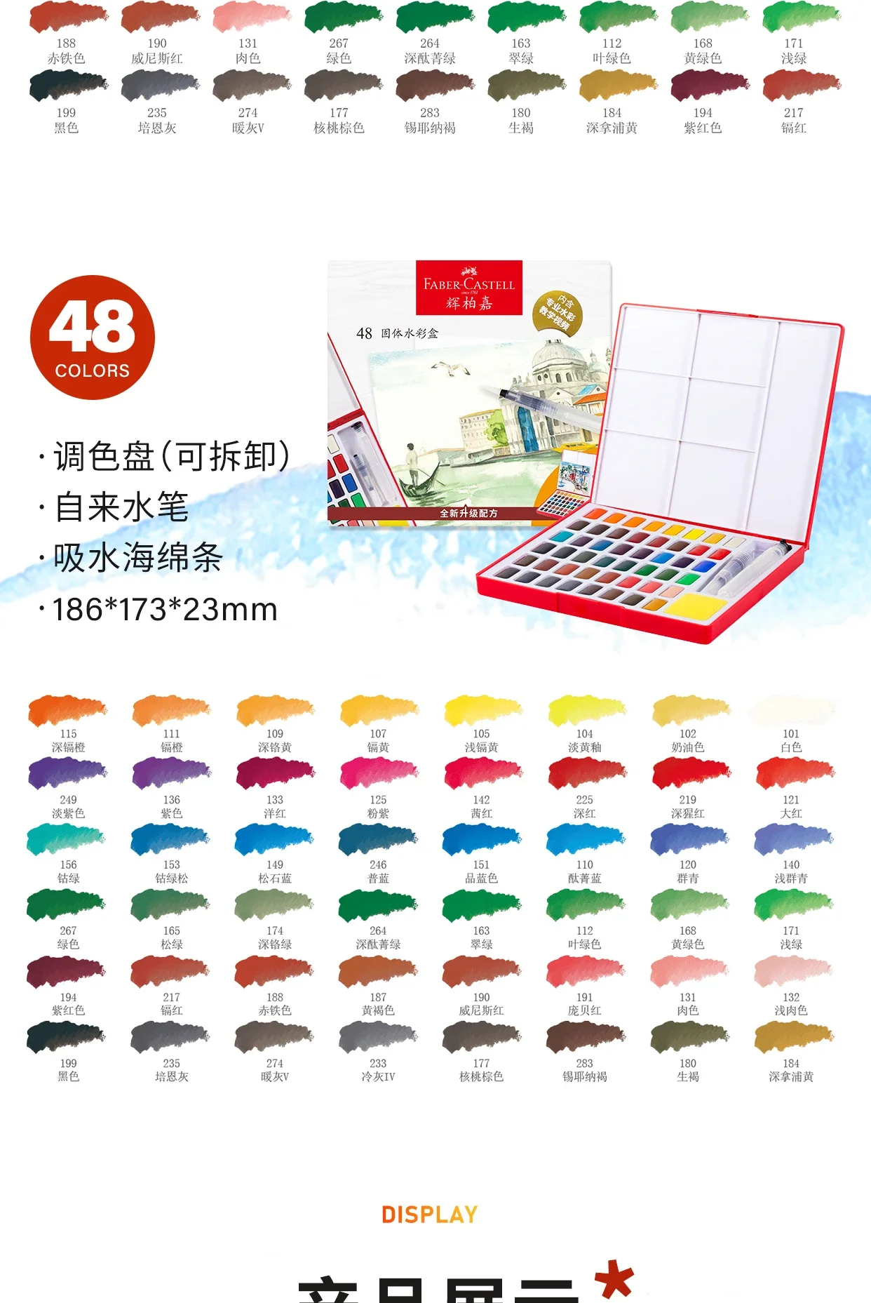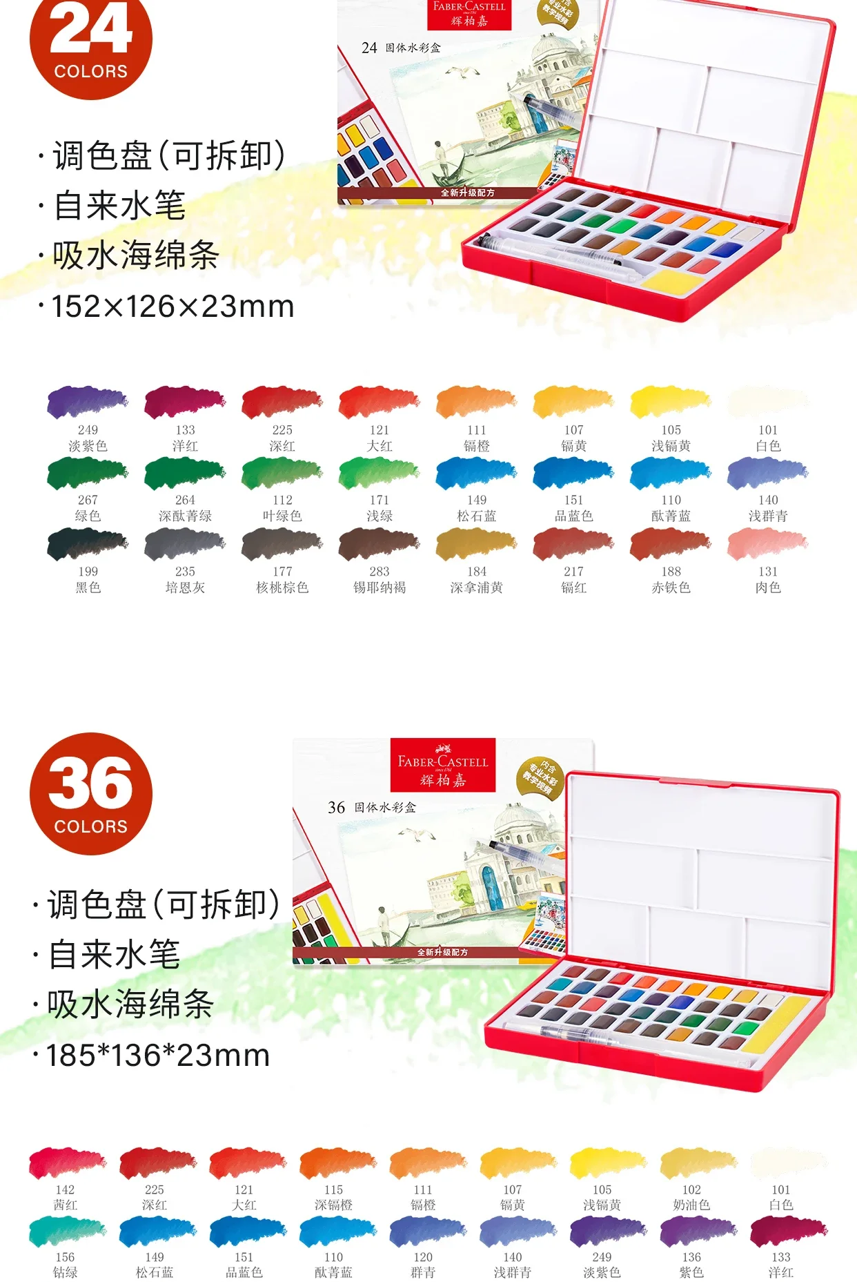 Set di colori ad acquerello Faber Castell 24/36/48 colori in custodia portatile con penne a pennello ad acqua e spugna per professionisti principianti