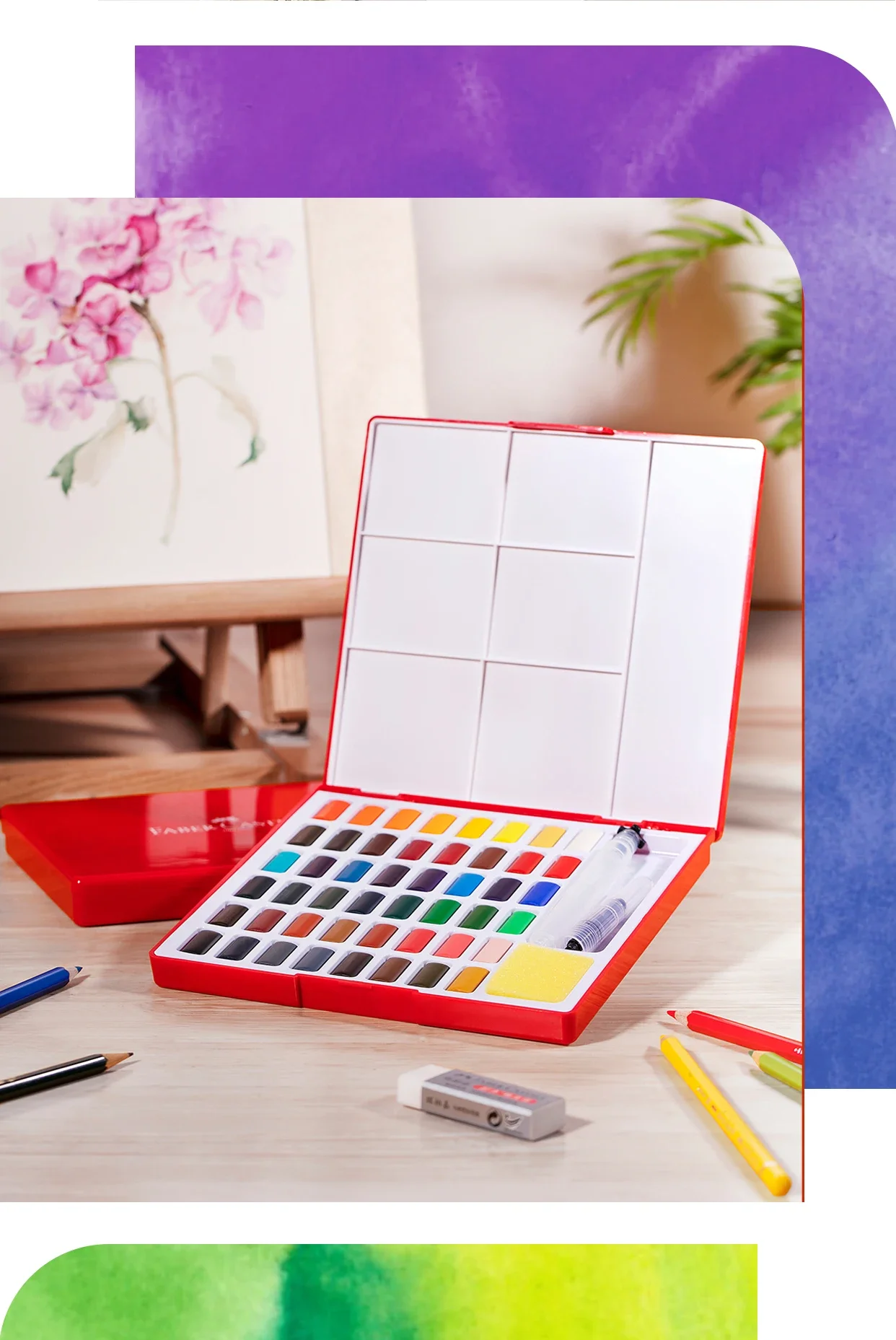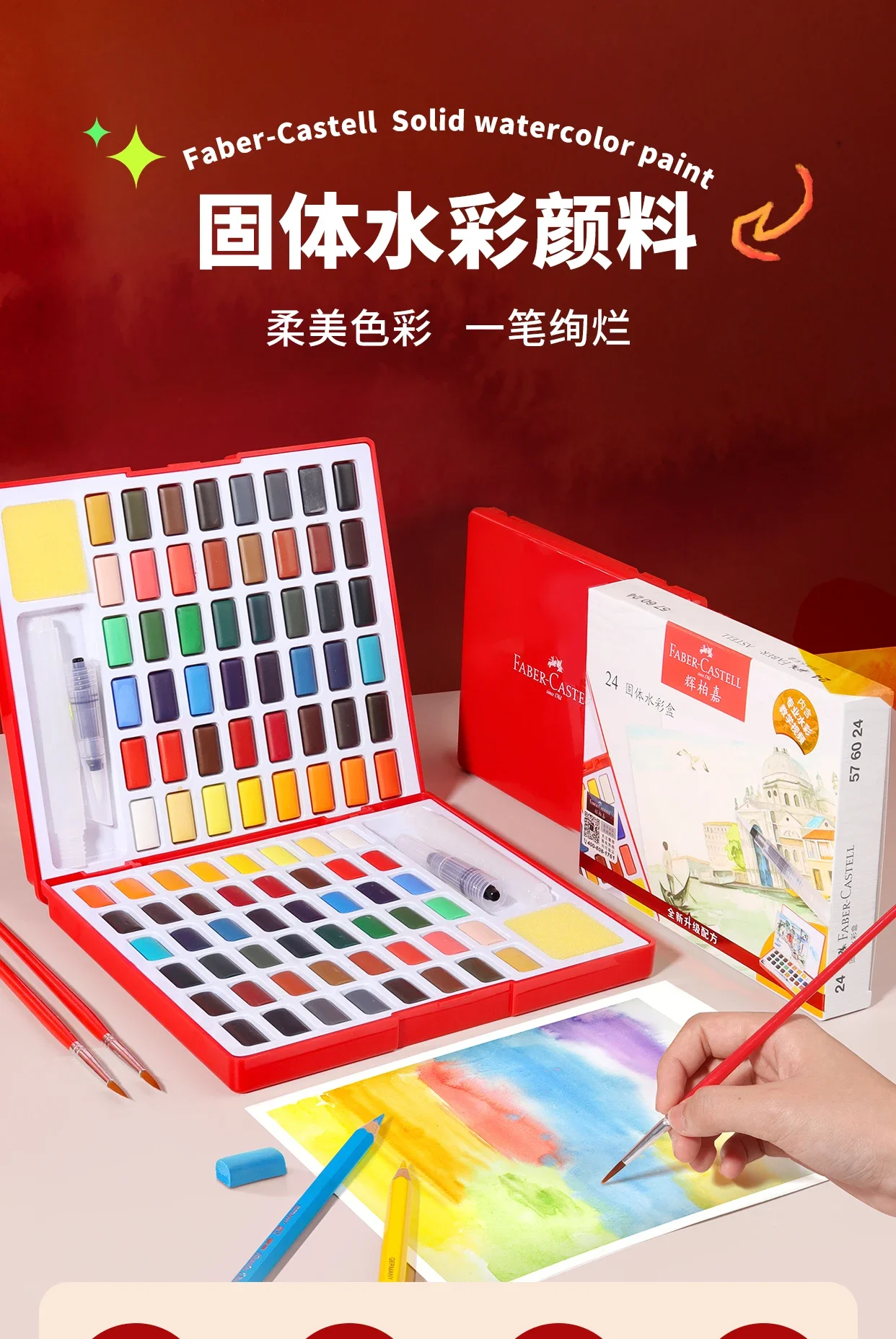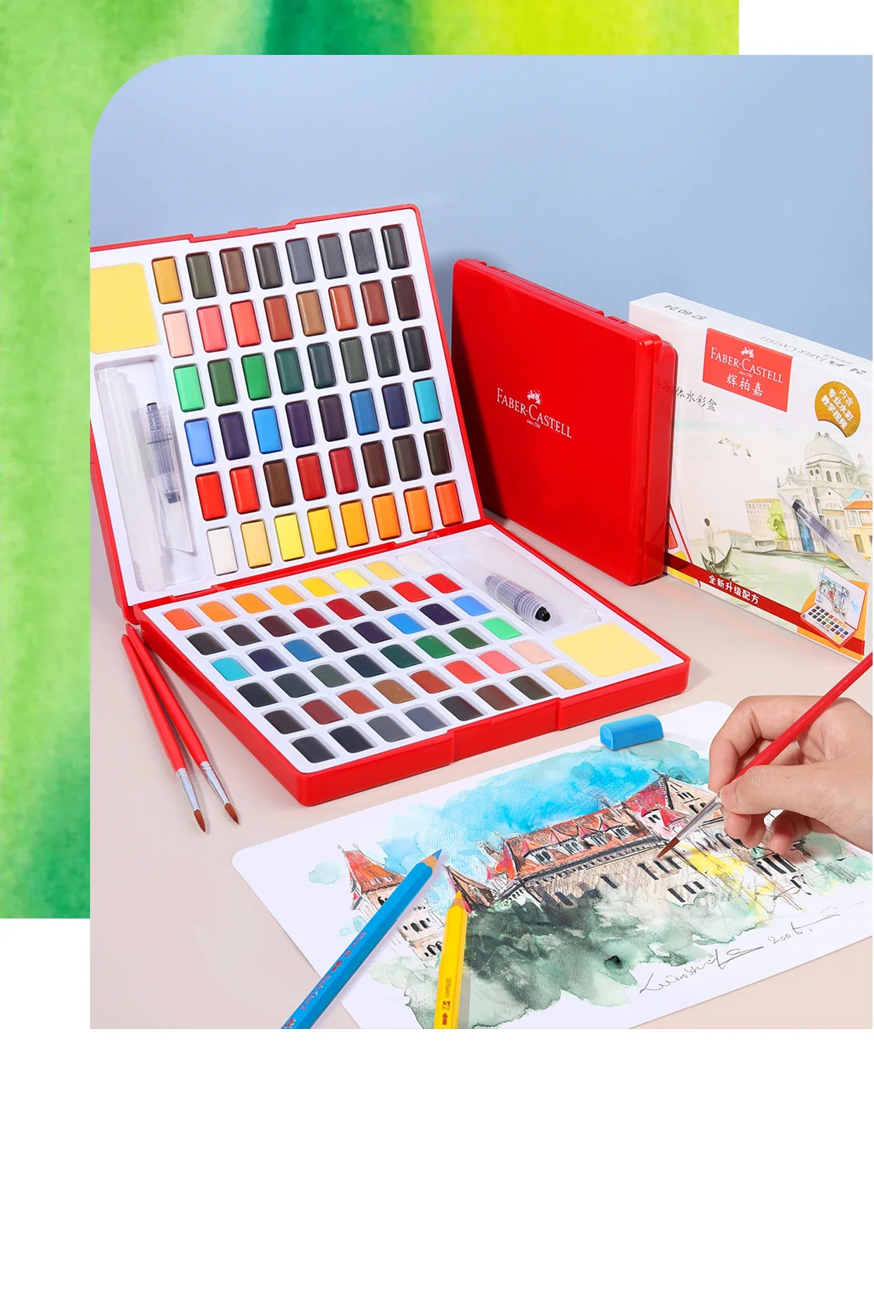Set di colori ad acquerello Faber Castell 24/36/48 colori in custodia portatile con penne a pennello ad acqua e spugna per professionisti principianti