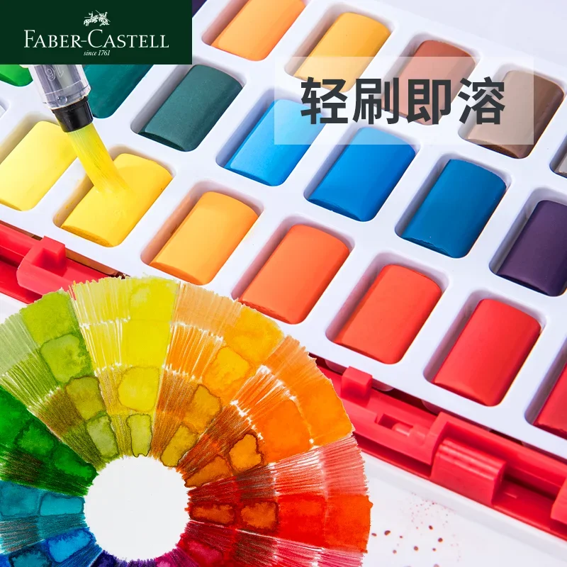 Set di colori ad acquerello Faber Castell 24/36/48 colori in custodia portatile con penne a pennello ad acqua e spugna per professionisti principianti