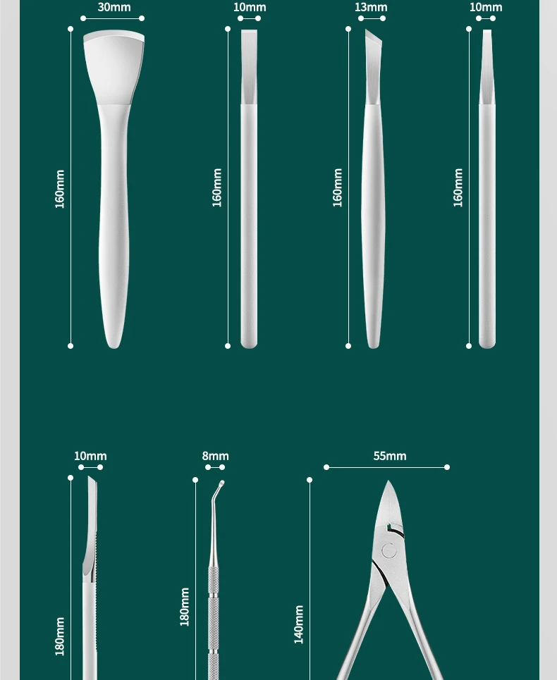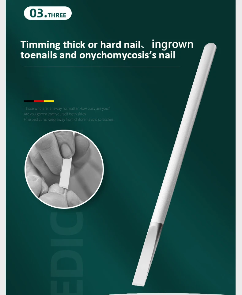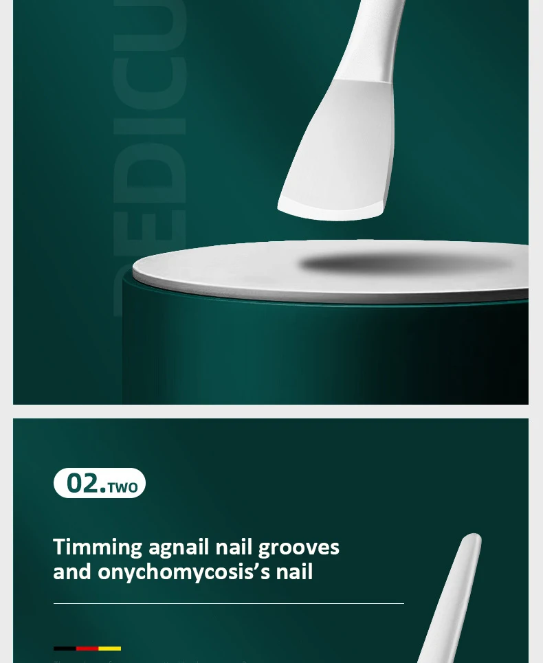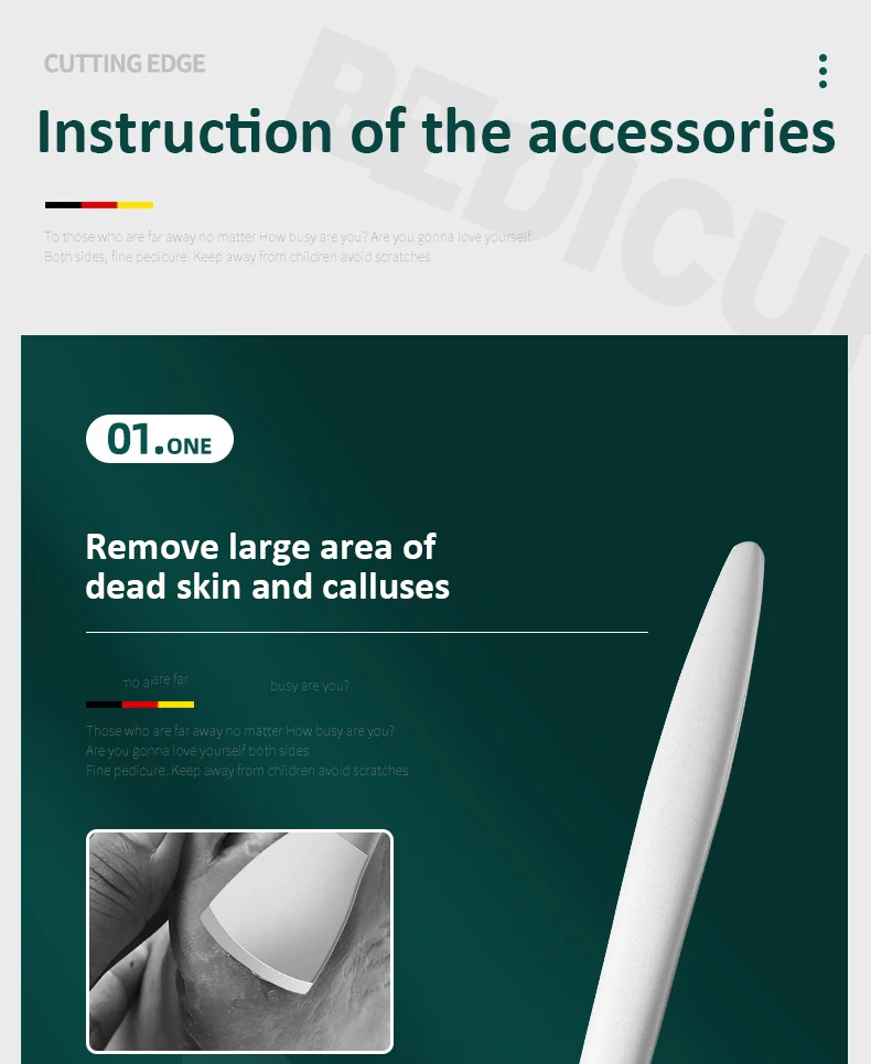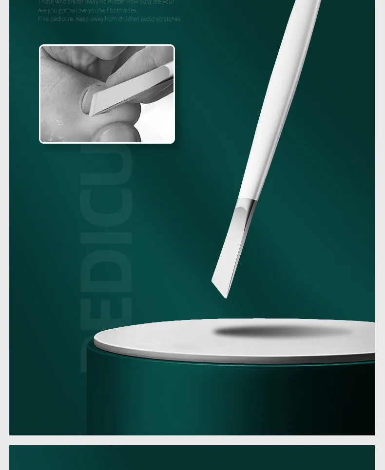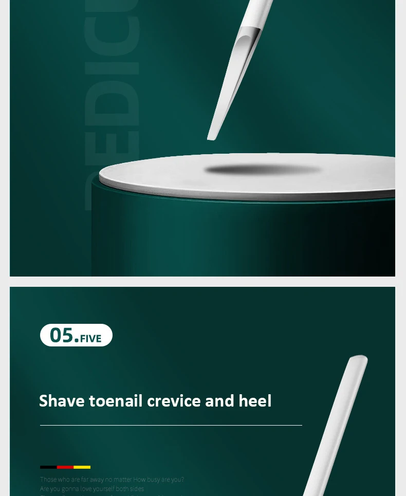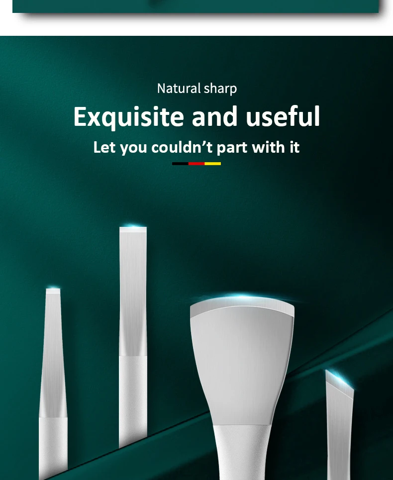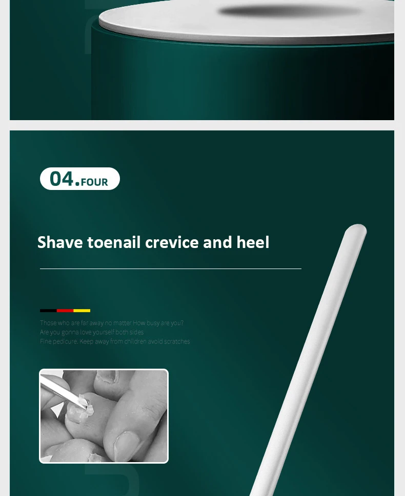 1.Questo è un set di coltelli per pedicure multifunzionali, che copre una varietà di accessori pratici, quattro diverse combinazioni di accessori sono disponibili per soddisfare diversi esigenze.