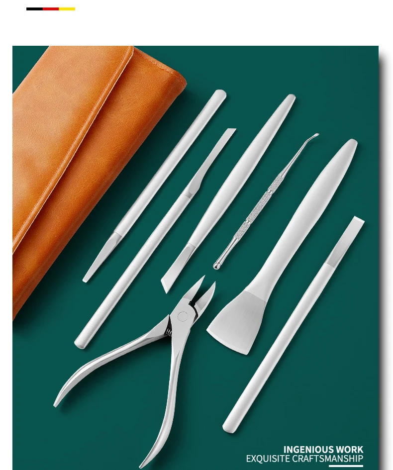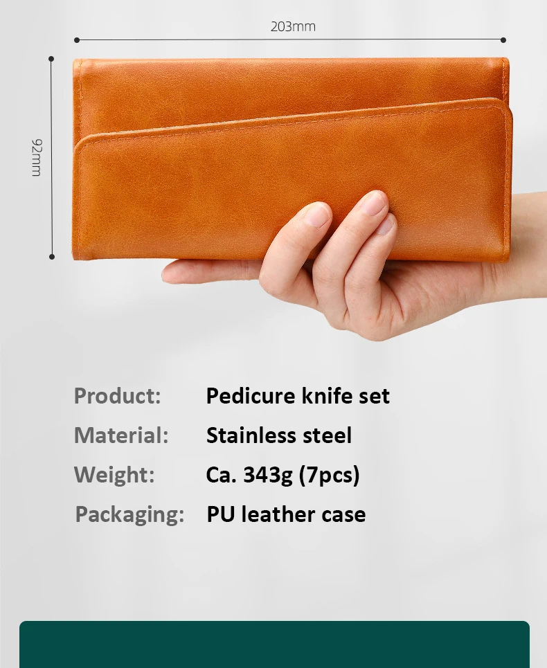 3. La custodia in pelle è realizzata in pelle PU di alta qualità. Ha un set di strumenti speciali per pedicure, che è una scelta molto buona.