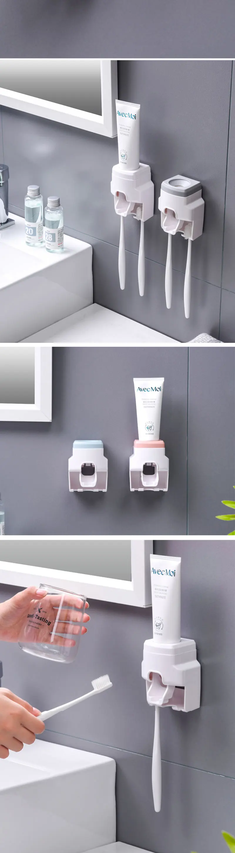 Set di dispenser automatico di dentifricio estrusore a parete in plastica senza punzonatura porta spazzolino per uomo pigro accessori per il bagno gadget