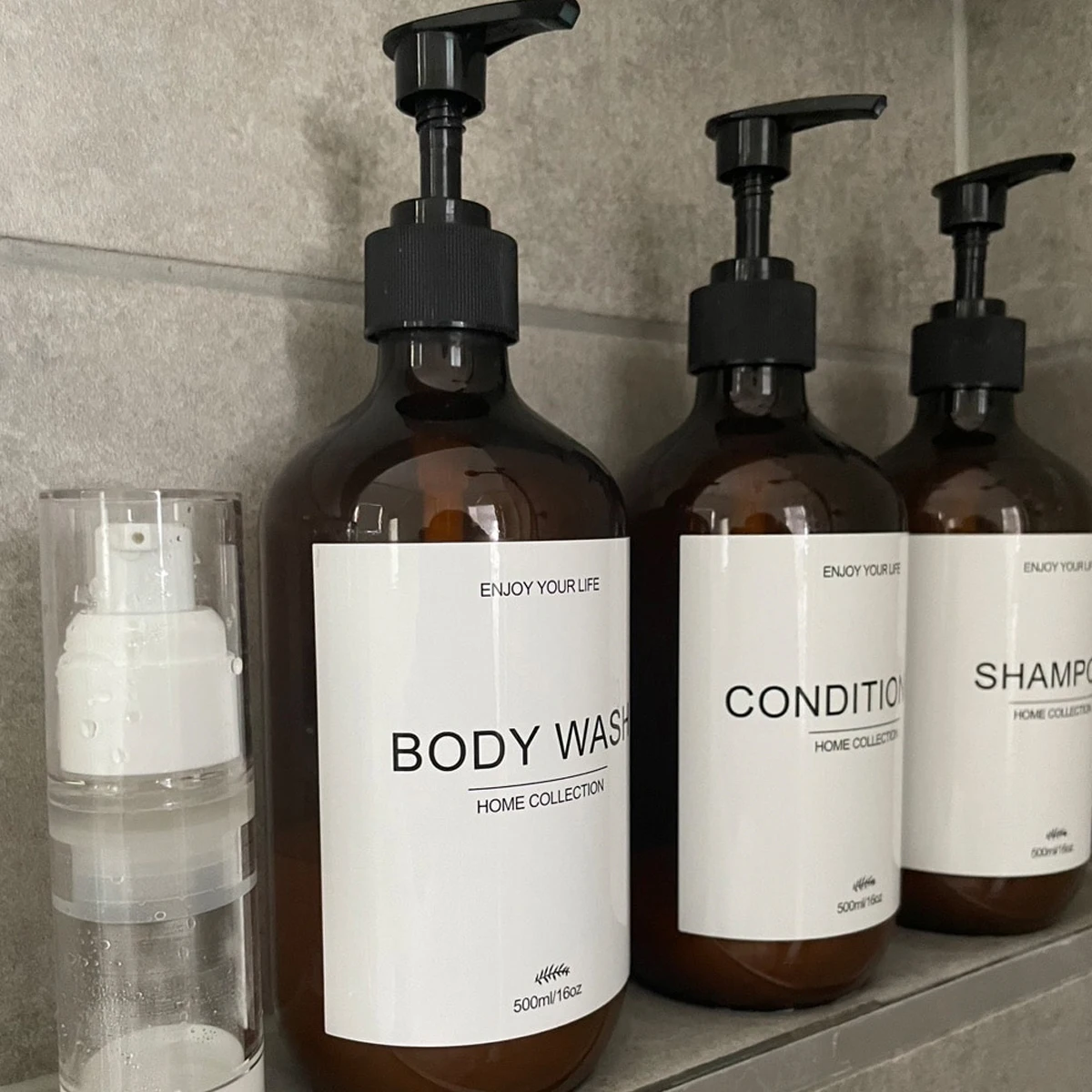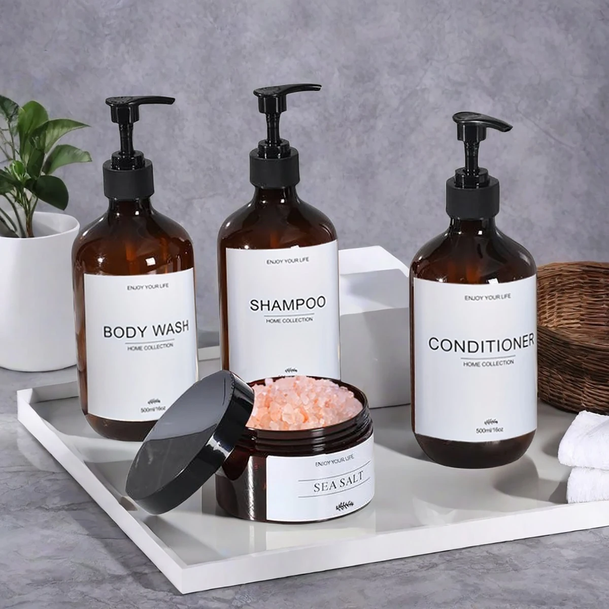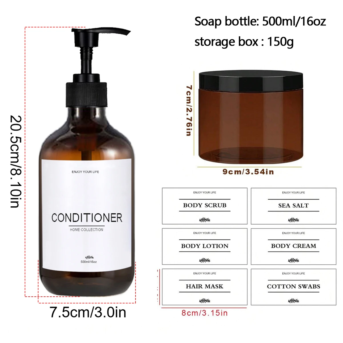 Set di Dispenser di sapone per doccia da bagno riutilizzabile Shampoo ambrato balsamo maschera per capelli Dispenser di Scrub per il corpo al sale marino con etichette