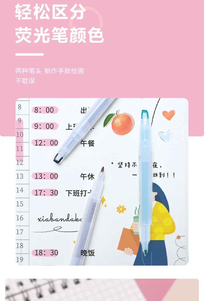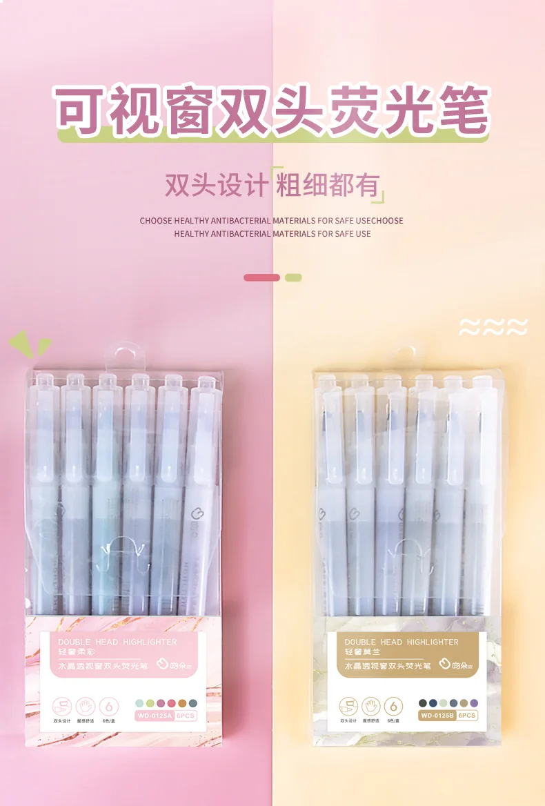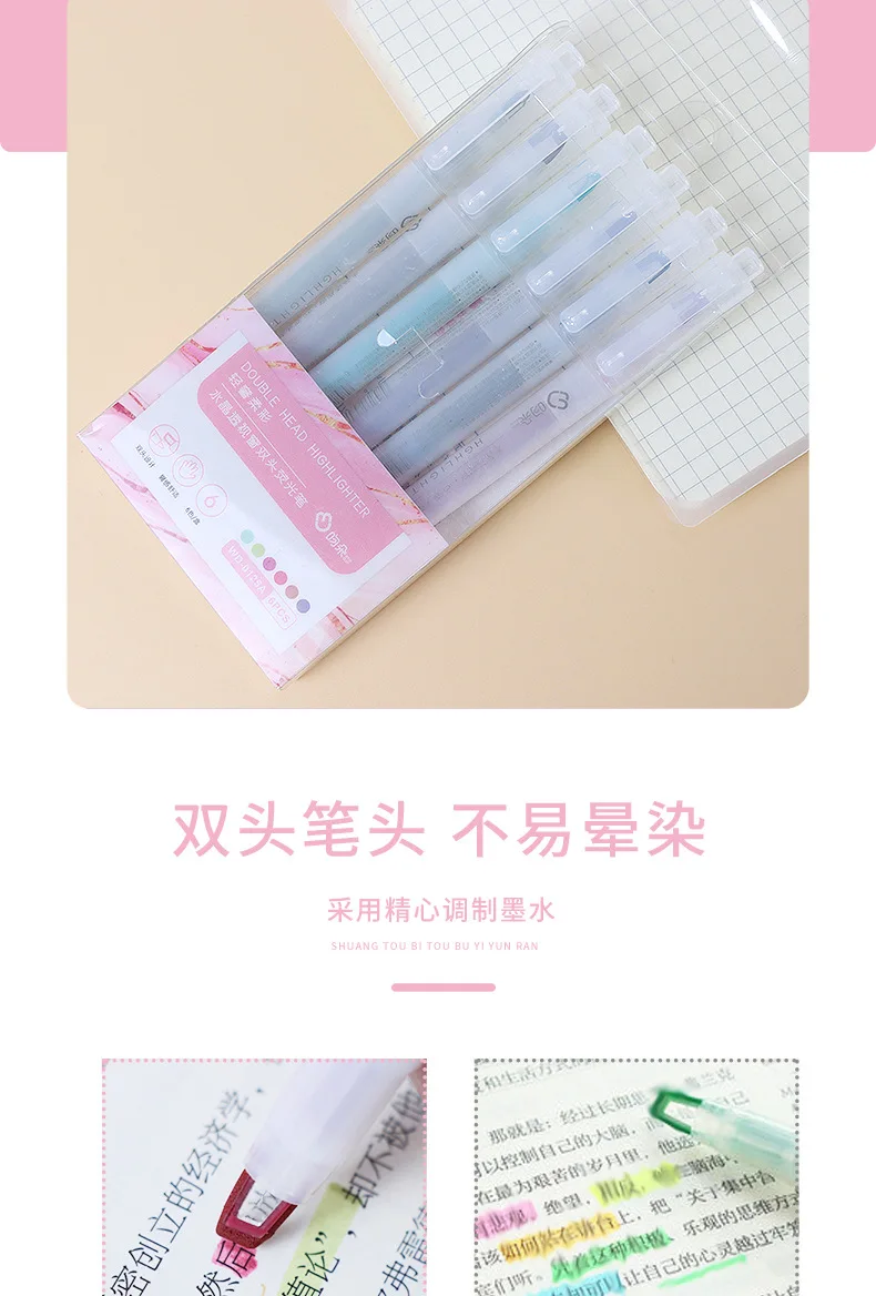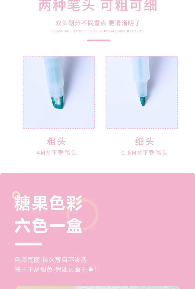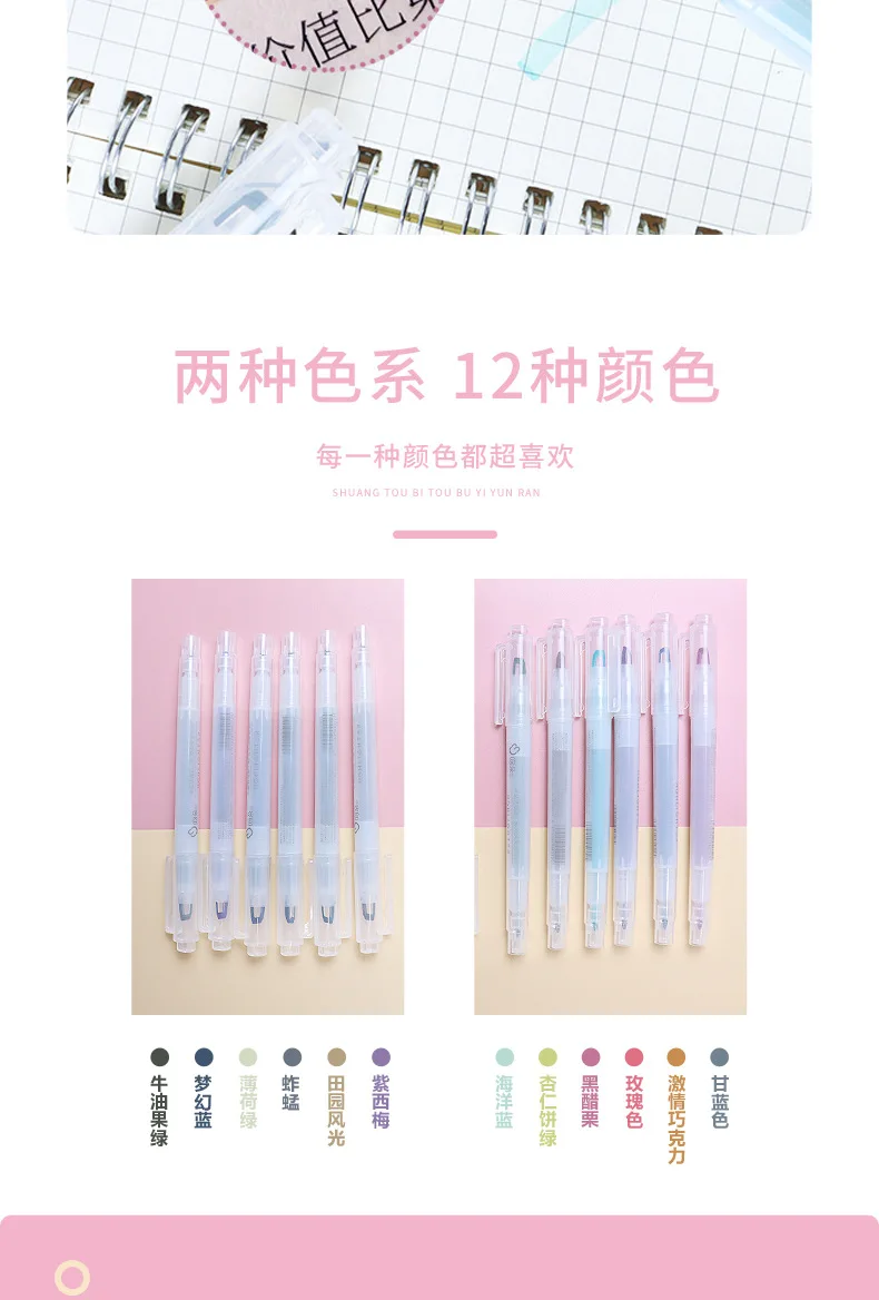 Set di evidenziatori Morandi a 6 colori evidenziatori pastello a doppia punta evidenziatori carini per esercizi di diario, cancelleria Kawaii