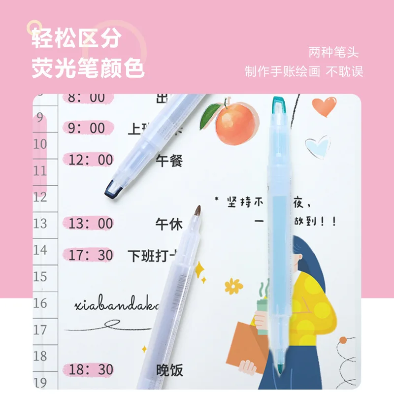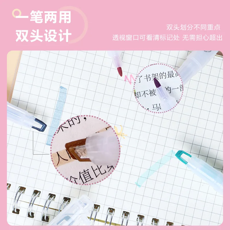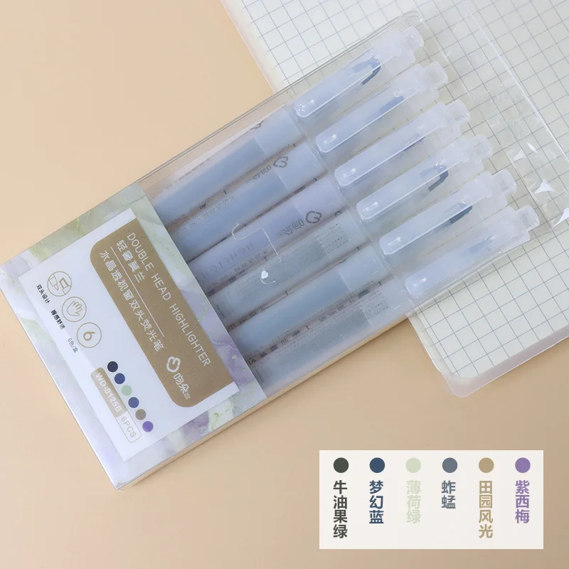 Set di evidenziatori Morandi a 6 colori evidenziatori pastello a doppia punta evidenziatori carini per esercizi di diario, cancelleria Kawaii