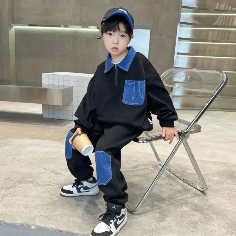 Set di felpe Colorblock Completo per bambini per ragazzo 2025 Nuovi vestiti Abbigliamento da esterno Inverno Bambini Set da uomo Ragazzi Ragazzo Top Bottom 1Set di felpe Colorblock Completo per bambini per ragazzo 2025 Nuovi vestiti Abbigliamento da esterno Inverno Bambini Set da uomo Ragazzi Ragazzo Top Bottom