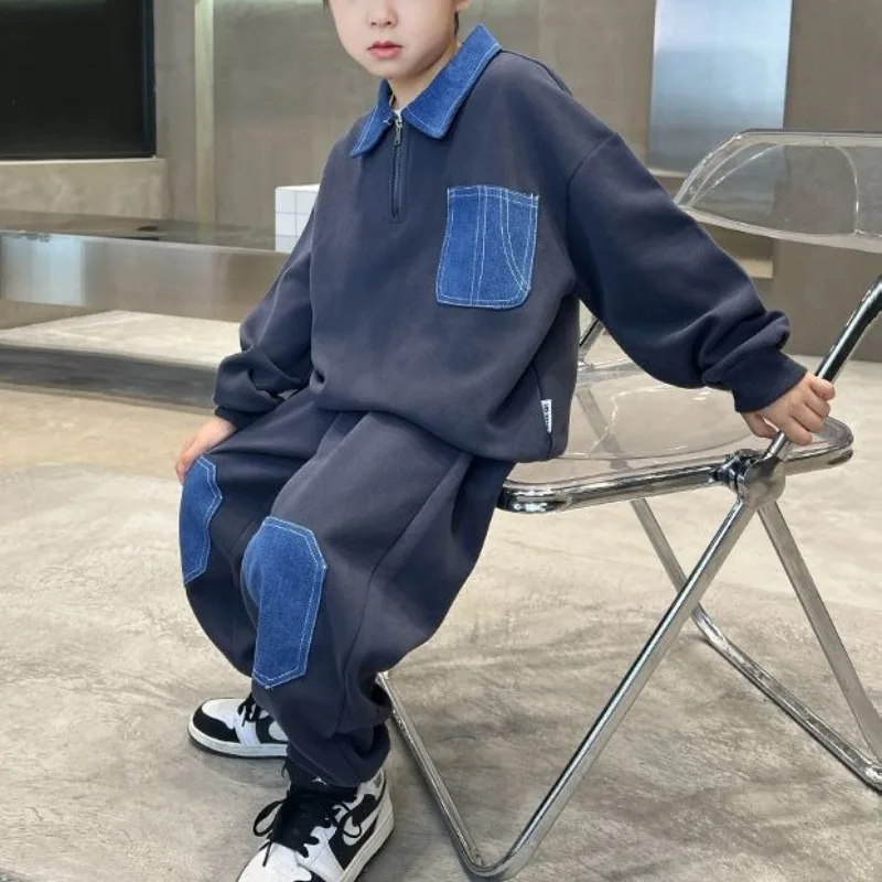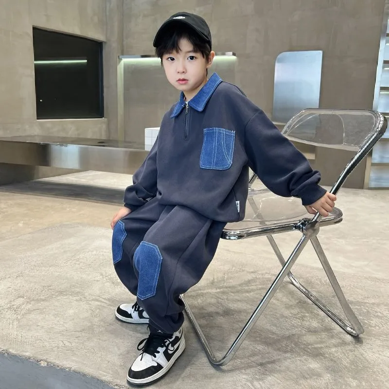 Set di felpe Colorblock Completo per bambini per ragazzo 2025 Nuovi vestiti Abbigliamento da esterno Inverno Bambini Set da uomo Ragazzi Ragazzo Top Bottom