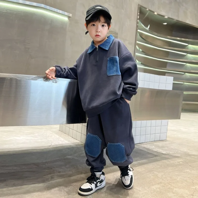 Set di felpe Colorblock Completo per bambini per ragazzo 2025 Nuovi vestiti Abbigliamento da esterno Inverno Bambini Set da uomo Ragazzi Ragazzo Top Bottom 1Set di felpe Colorblock Completo per bambini per ragazzo 2025 Nuovi vestiti Abbigliamento da esterno Inverno Bambini Set da uomo Ragazzi Ragazzo Top Bottom