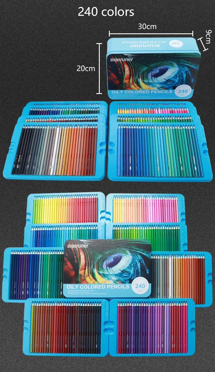 Set di matite colorate 180/240/300 con custodia in tela arrotolabile per libri da colorare per adulti, strumenti di disegno, schizzi artistici e disegni