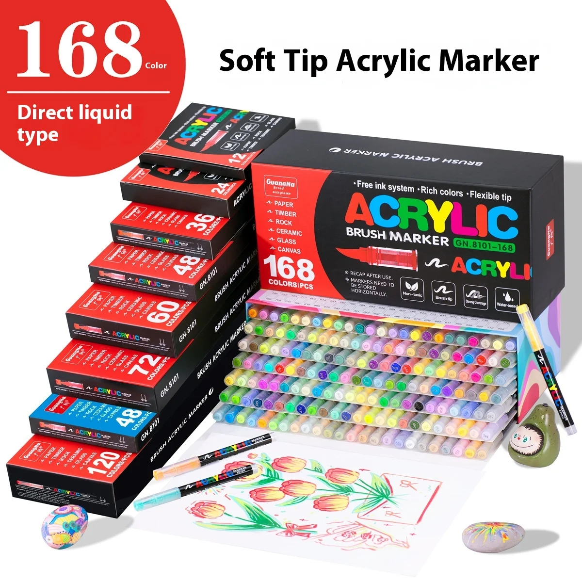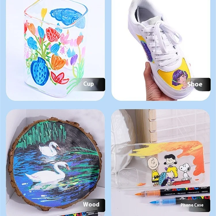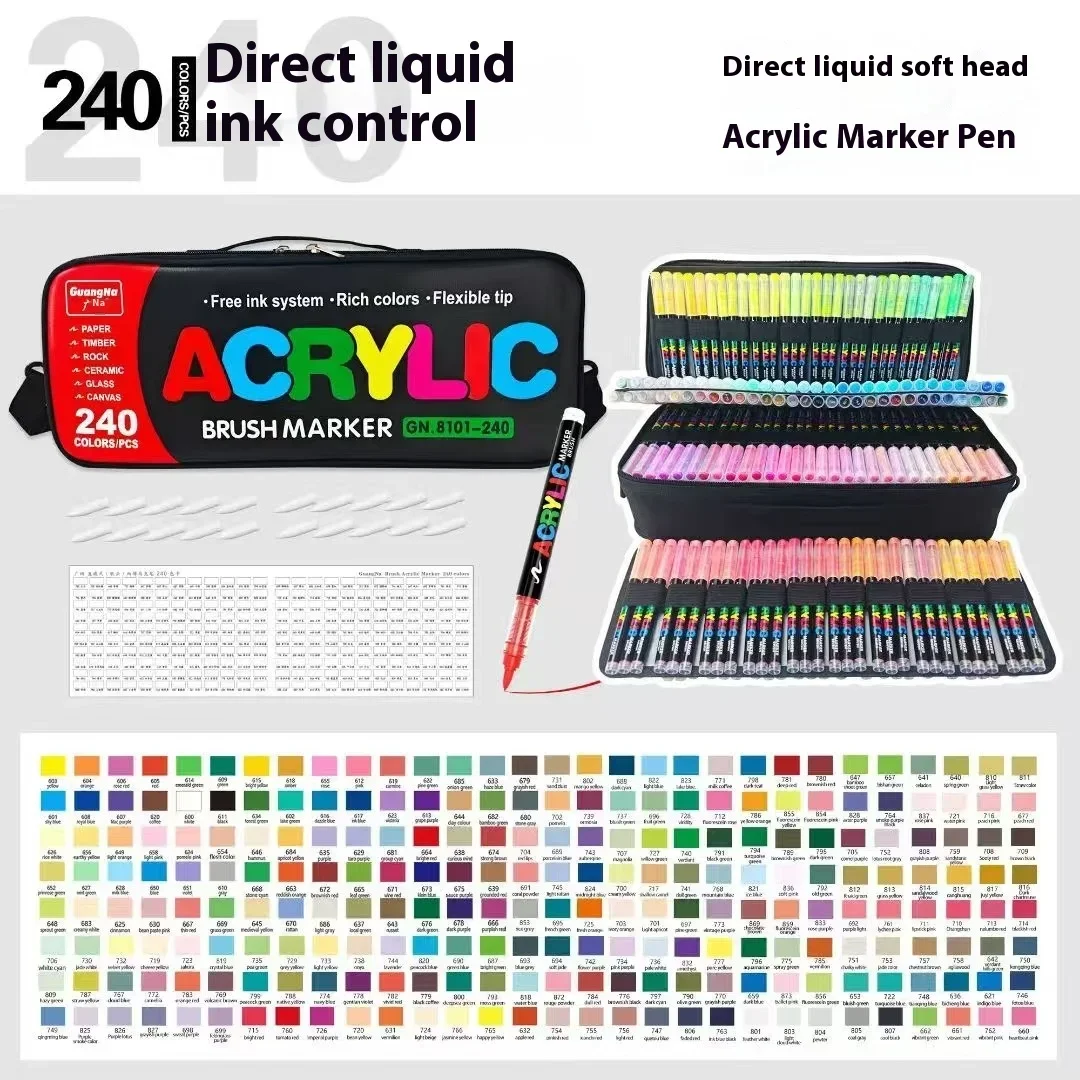 Set di pennarelli per vernice acrilica da 12 a 240 colori Pennarello a pennello multipunta per pittura su roccia Forniture per arte su pietra Strumenti scolastici professionali