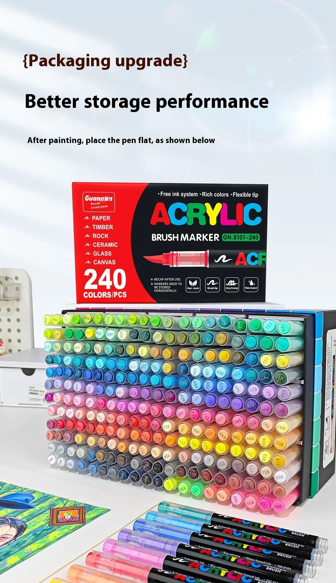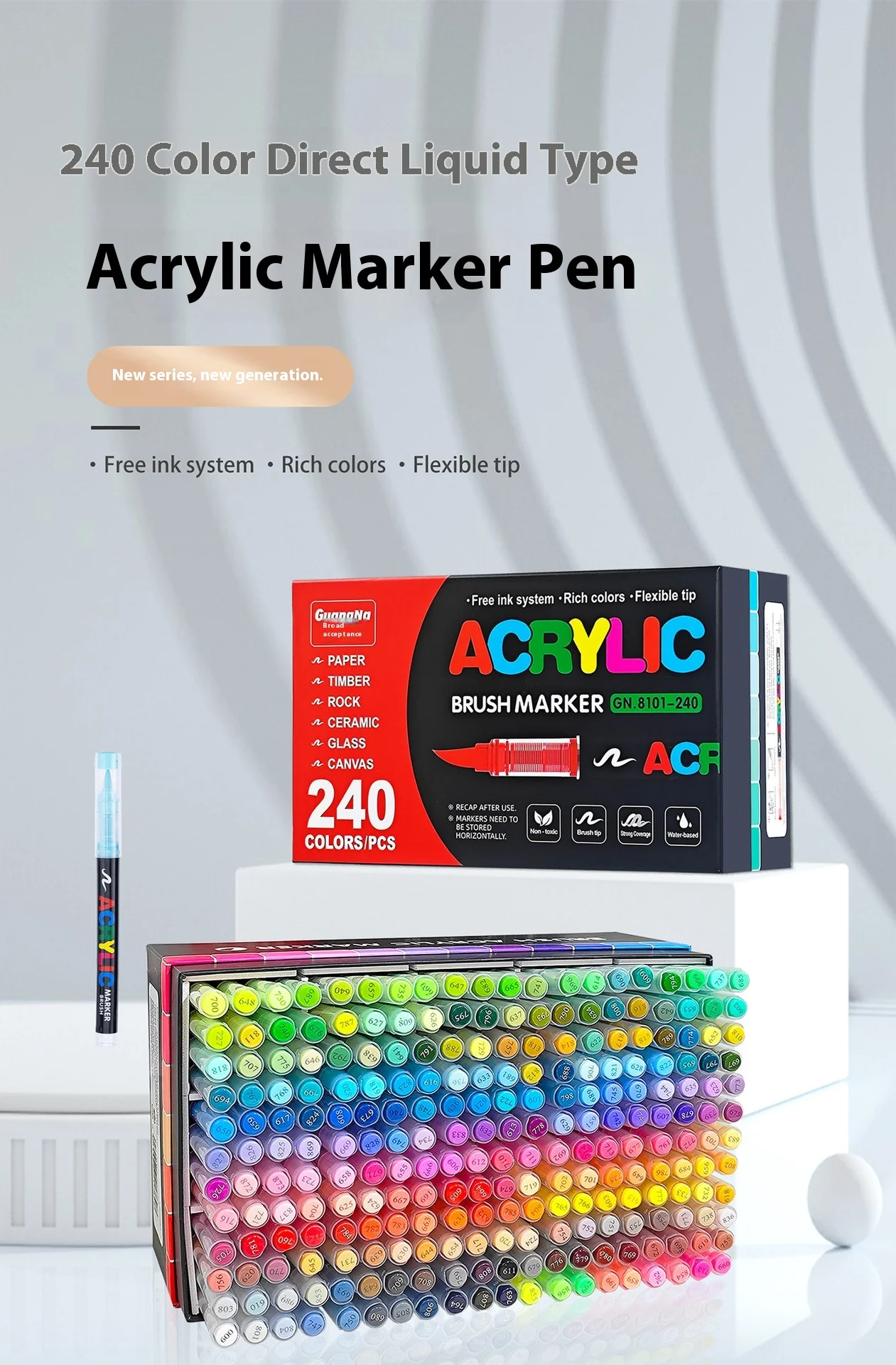 Set di pennarelli per vernice acrilica da 12 a 240 colori Pennarello a pennello multipunta per pittura su roccia Forniture per arte su pietra Strumenti scolastici professionali