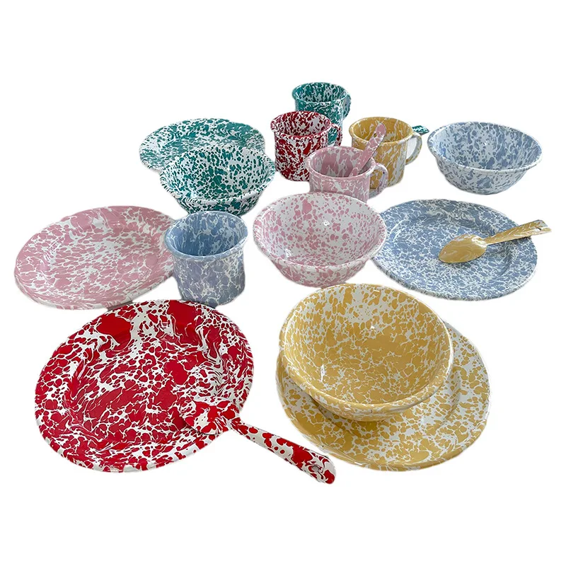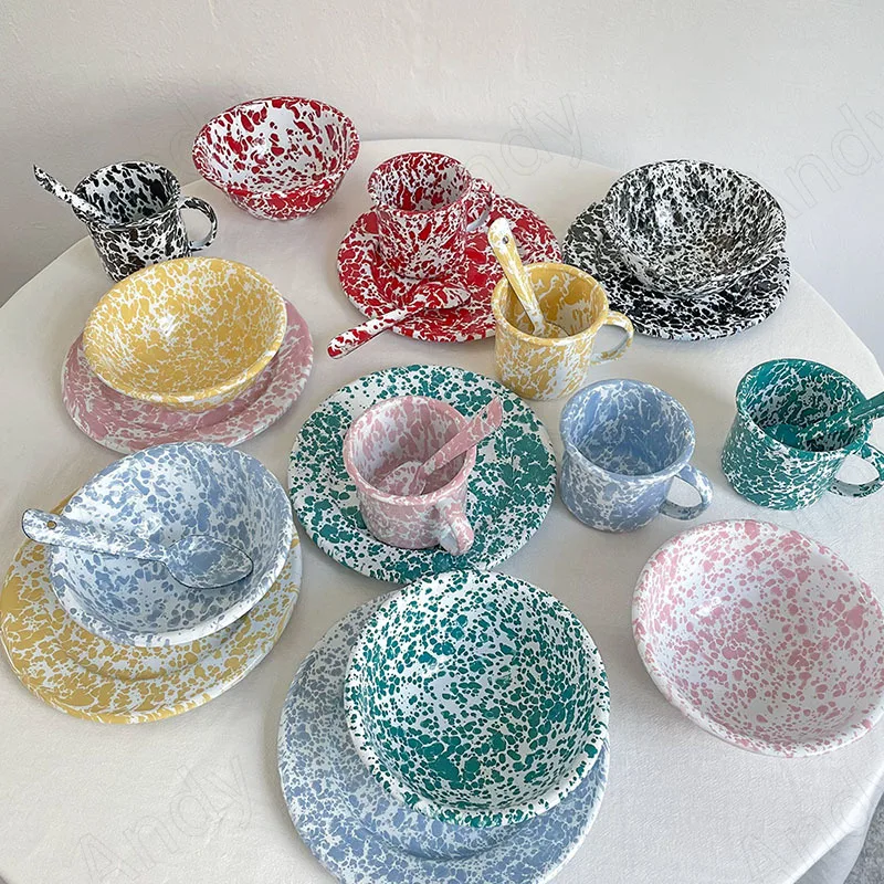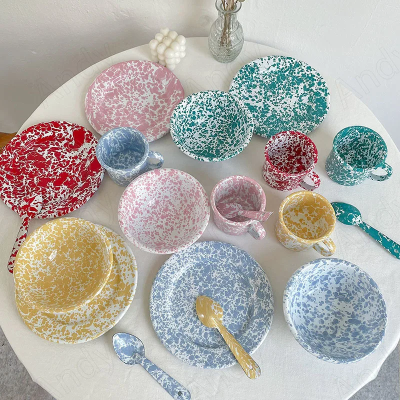 Set di piatti da pranzo in smalto europeo Set di piatti e piatti per la casa con inchiostro a spruzzo retrò soggiorno creativo piatto da insalata di frutta da tavolo