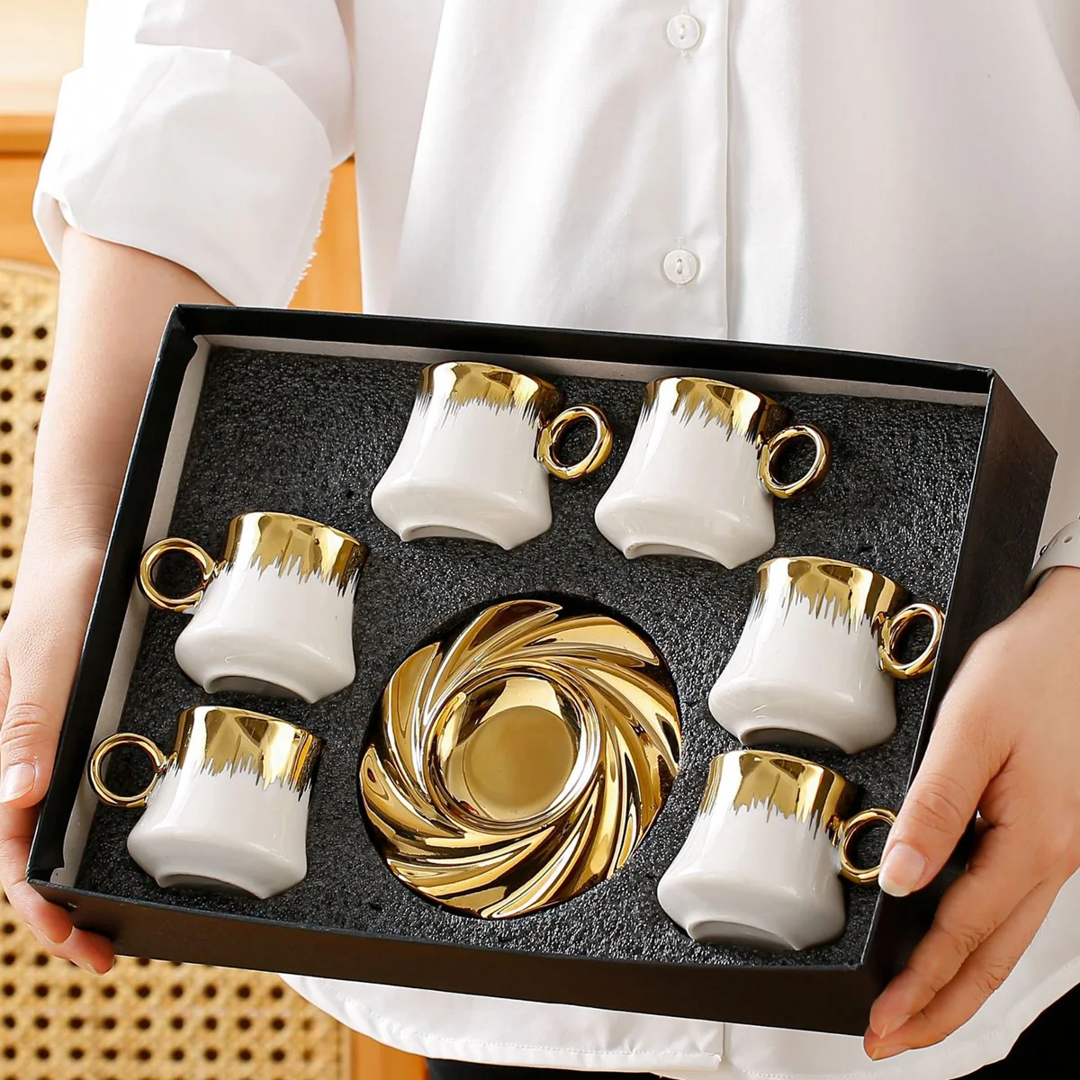 Set di piatti per tazze da caffè placcati in ceramica dell’Arabia Saudita del Medio Oriente di alta qualità Set di tazze e piattini doratiPensa ad un Regalo Unico e Utile per le Persone a te Vicine!! Regala un buono a partire da € 10,00 a € 300,00