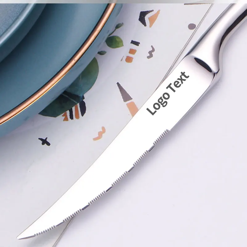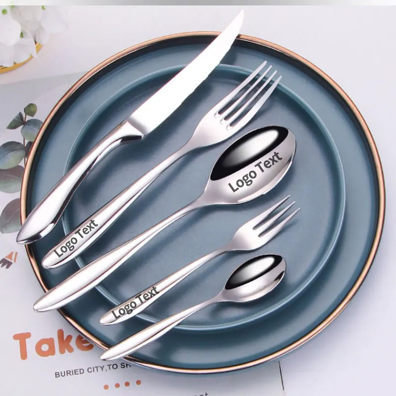 Set di posate con logo personalizzato gratuito da 5 set/5 pezzi, cucchiaio/forchetta/coltello in acciaio inossidabile 304 con logo personalizzato inciso al laser per hotel/caffetteria