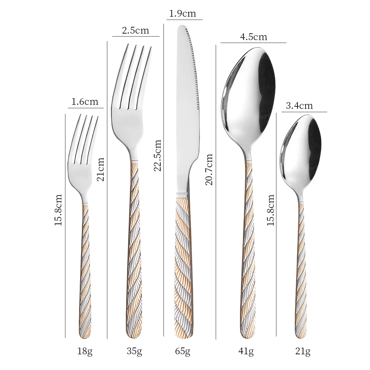 Set di posate con manico intrecciato in acciaio inossidabile, coltello, forchetta, cucchiaio, corda intrecciata, modello in rilievo, set di posate