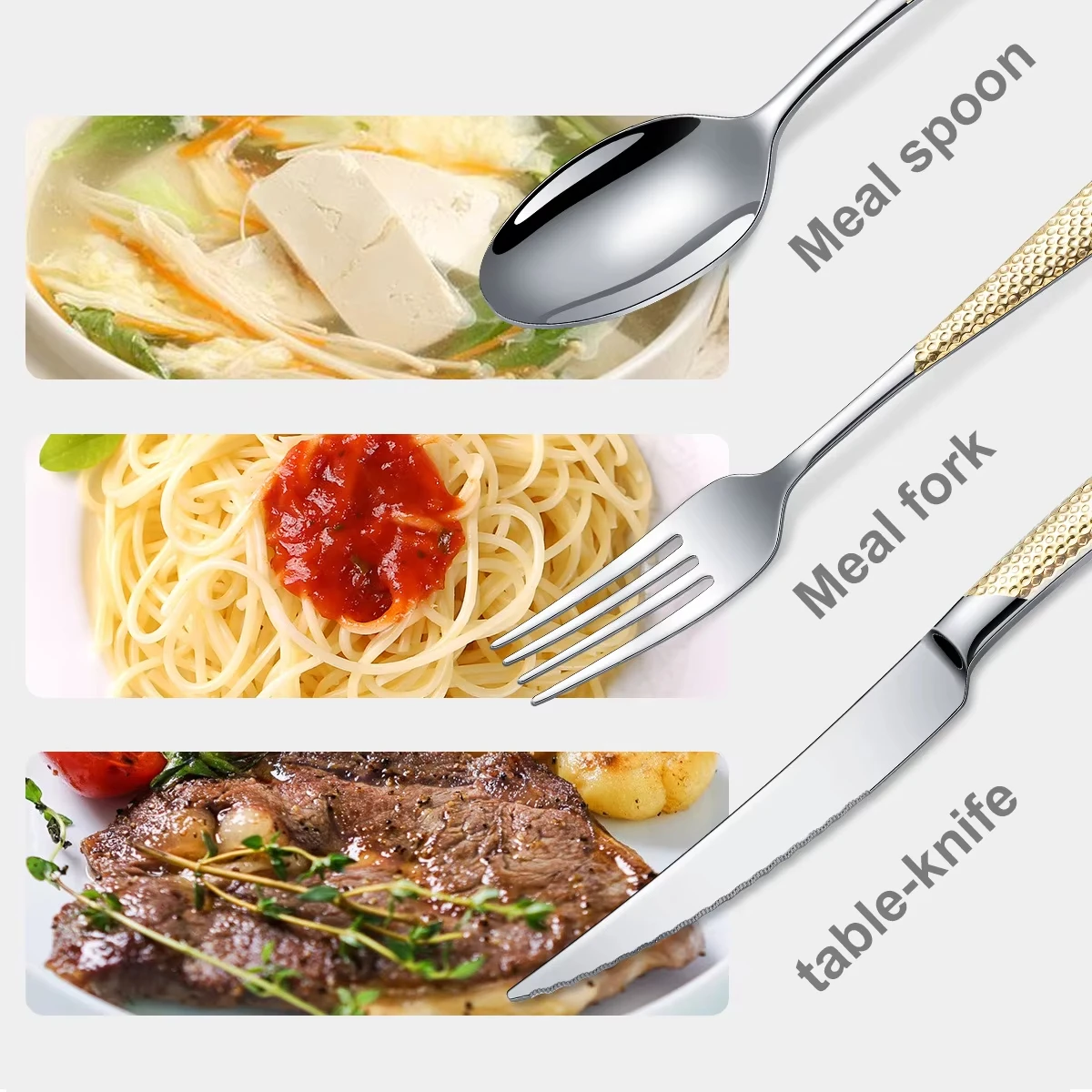 Realizzate in materiale di acciaio inossidabile di alta qualità, le stoviglie sono robuste e durevoli, antiruggine.Facile da usare e da pulire: lavabile in lavastoviglie;