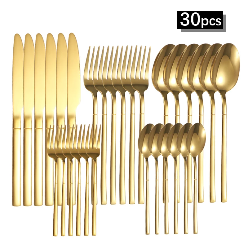 Set di posate in acciaio inossidabile da 6/30 pezzi, coltello da bistecca di fascia alta, forchetta, cucchiaio da dessert, adatto per feste di banchetti di ristoranti