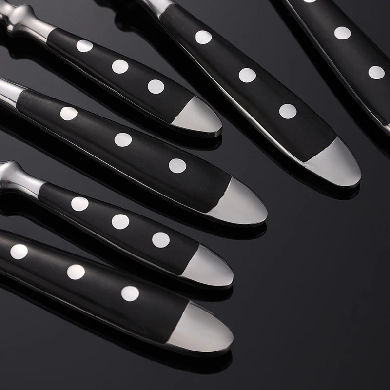 Caratteristiche: 1, motivo a stella — stile rivetto classico in stile occidentale, retrò ed elegante, adatto per la decorazione del desktop per occasioni di cena formale nei ristoranti. Acciaio inossidabile 2,430 —- è sicuro e inodore, resistente alle alte temperature e resistente alla corrosione, certificato LFGB, soddisfa i requisiti del contatto cutaneo e non danneggia la pelle. 3, Western —- le stoviglie in stile classico sono uno strumento di cottura essenziale per ristoranti prima dei pasti. Con un cucchiaio, puoi avere un pasto piacevole. 4, comodo —- design ergonomico, comoda impugnatura in legno, curvatura liscia dell’estremità anteriore della forcella, non sarà la lingua, adatta ai bambini. Materiale: acciaio inossidabile 430 e legno di bachelite
