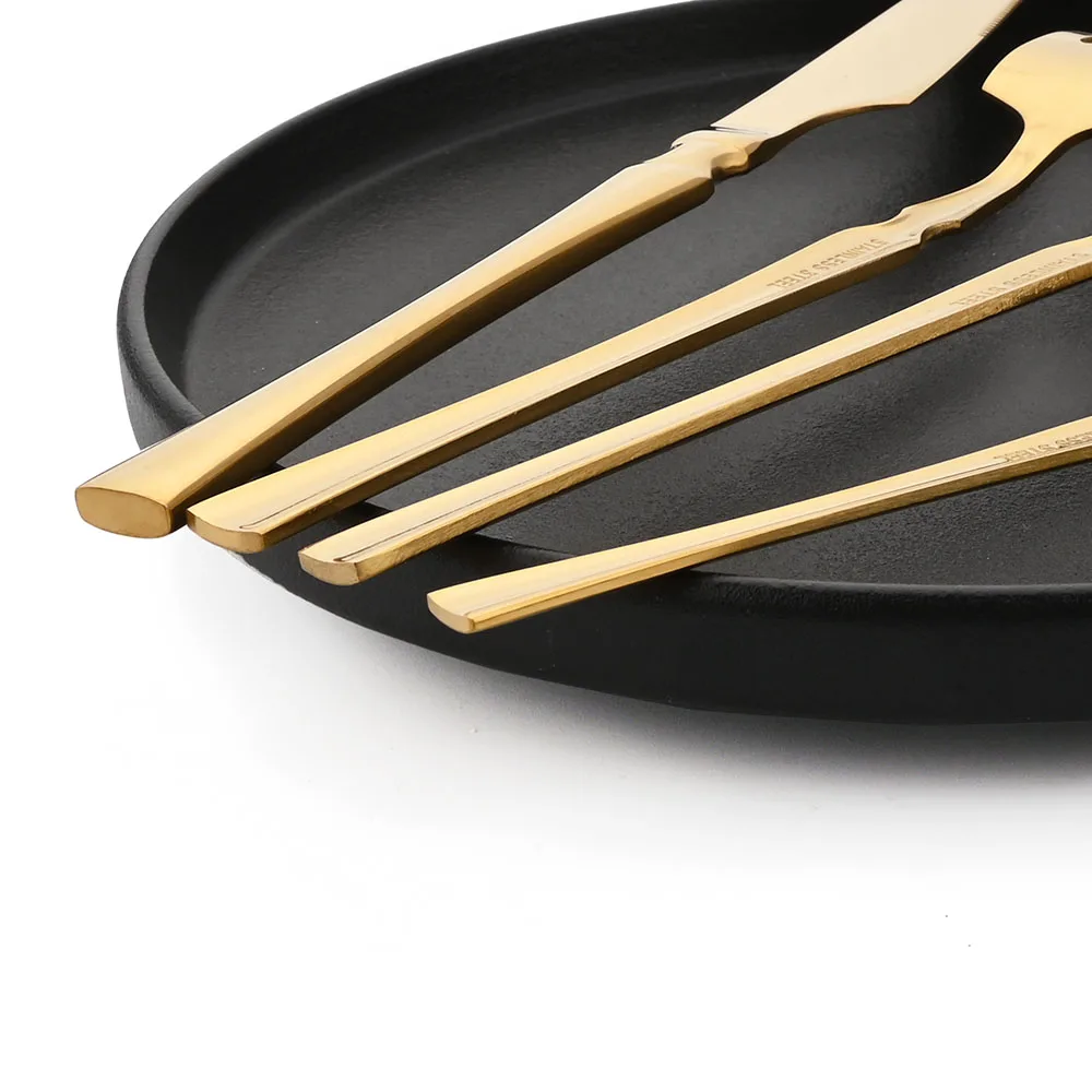 3. Lunghezza e peso del set di posate: coltello da tavola (230mm + 50g) /cucchiaio da tavola (20.5mm + 30g) /forchetta da pranzo (205mm + 30g) /Cucchiaino da tè (155mm + 20g)