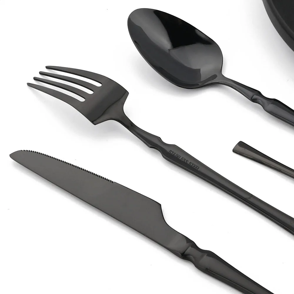 3. Lunghezza e peso del set di posate: coltello da tavola (230mm + 50g) /cucchiaio da tavola (20.5mm + 30g) /forchetta da pranzo (205mm + 30g) /Cucchiaino da tè (155mm + 20g)