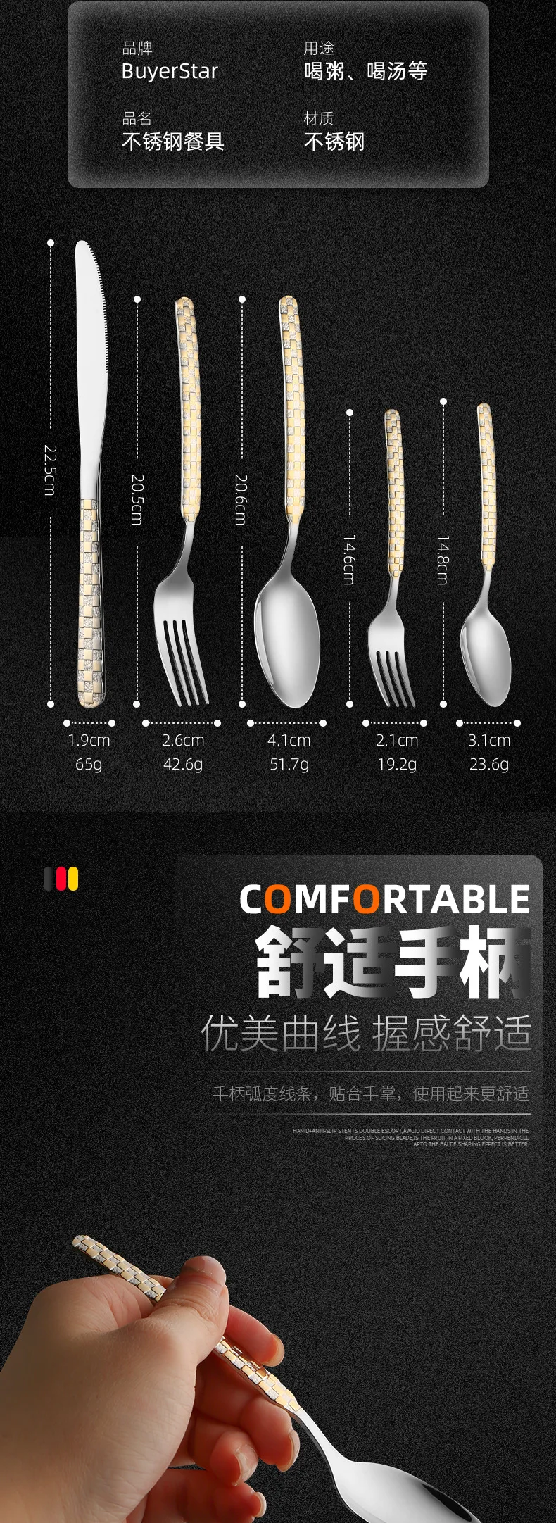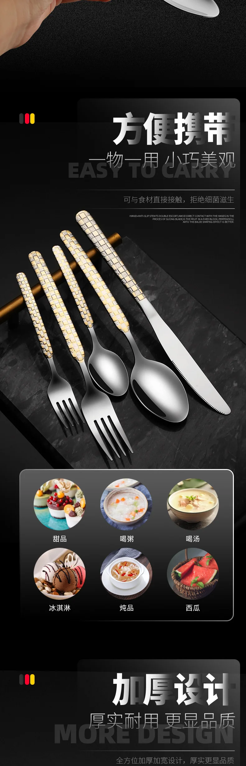 Set di posate per stoviglie da cucina Set di posate in argento Set di posate in acciaio inossidabile di lusso Forchetta Cucchiaio Coltello Cena occidentale Oro