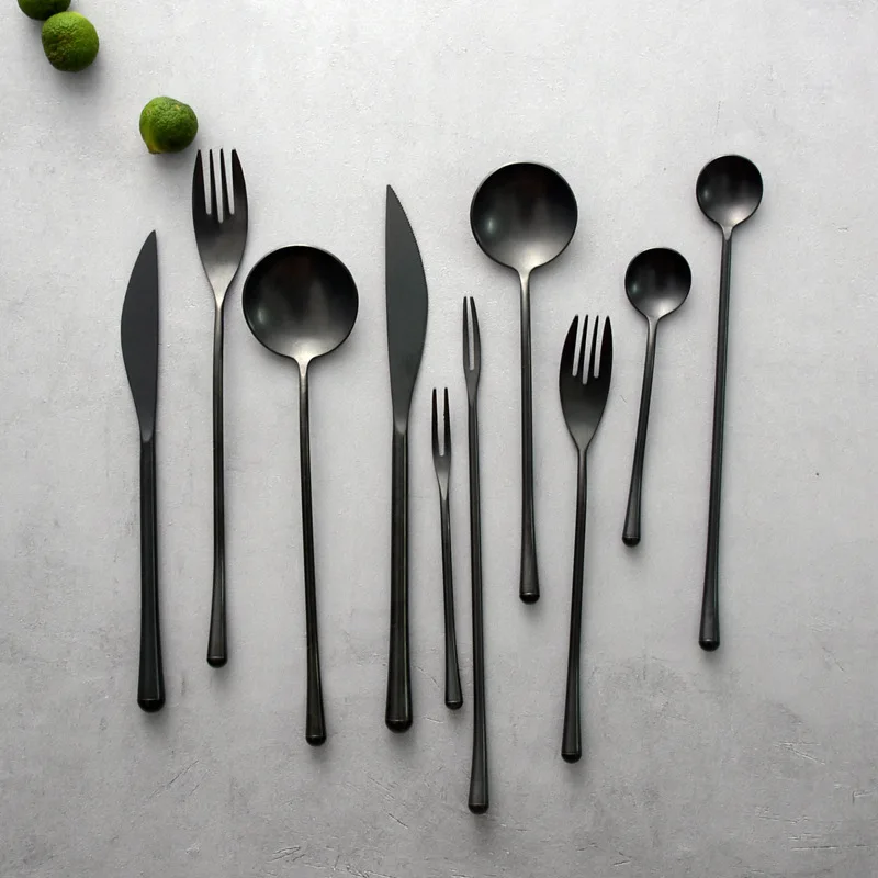 Set di posate nere retrò giapponesi* Materiale: acciaio inossidabile 304* Colore: Nero* I materiali per l’uso delle posate sono in acciaio inossidabile di alta qualità, i servizi di qualità sono garantiti, si prega di essere sicuri di acquistare.Formato:1. Cena coltello, 2. Cena forchetta, 3. Cena cucchiaio.4. Da Dessert coltello, 5. Forcella Da Dessert, 6. Cena cucchiaio.7. Forchetta da frutta, cucchiaio da tè 8., forchetta lunga 9.10. Cucchiaio di ghiaccio lungo. Caratteristiche: Spedizione:
