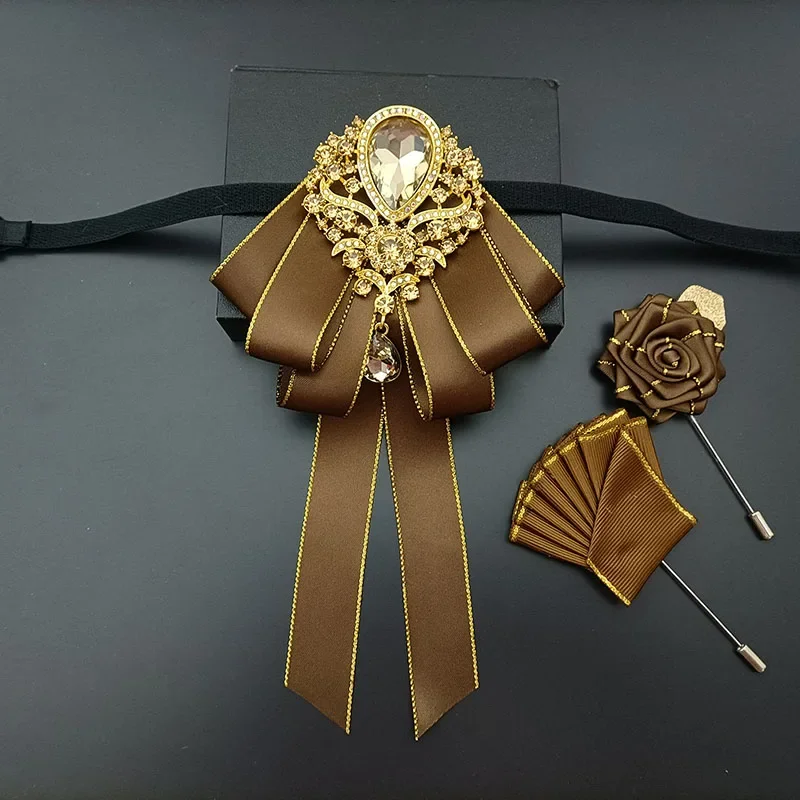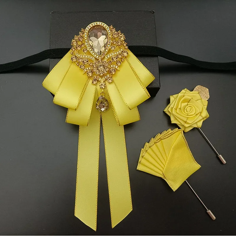Set di spille per papillon da sposa di lusso accessori da concerto vestito da donna da uomo colletto della camicia corpetto di fiori 3 pezzi Set di gioielli fatti a mano
