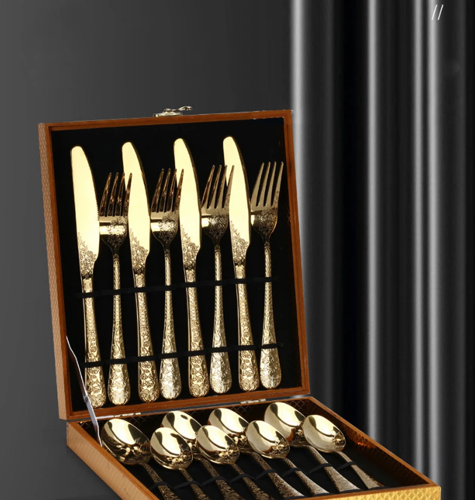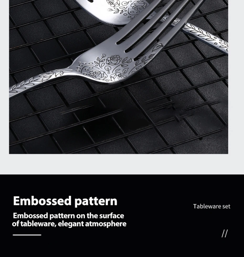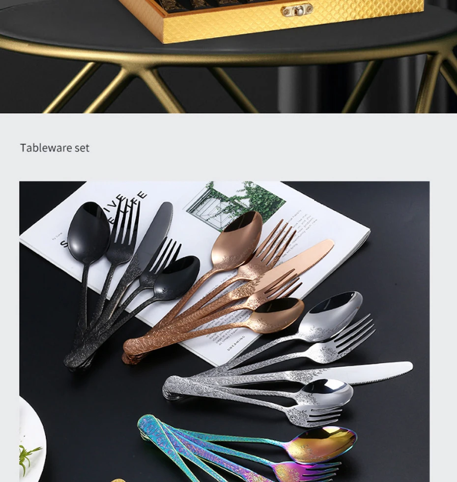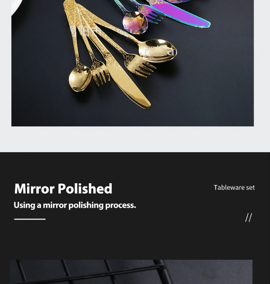 Il processo di lucidatura a specchio di alta qualità porta la superficie dei coltelli e delle forchette a una finitura morbida e liscia. Questo set di posate d’oro ha buone proprietà riflettenti, brilleranno con un bagliore dorato per aggiungere brillantezza al tuo tavolo.