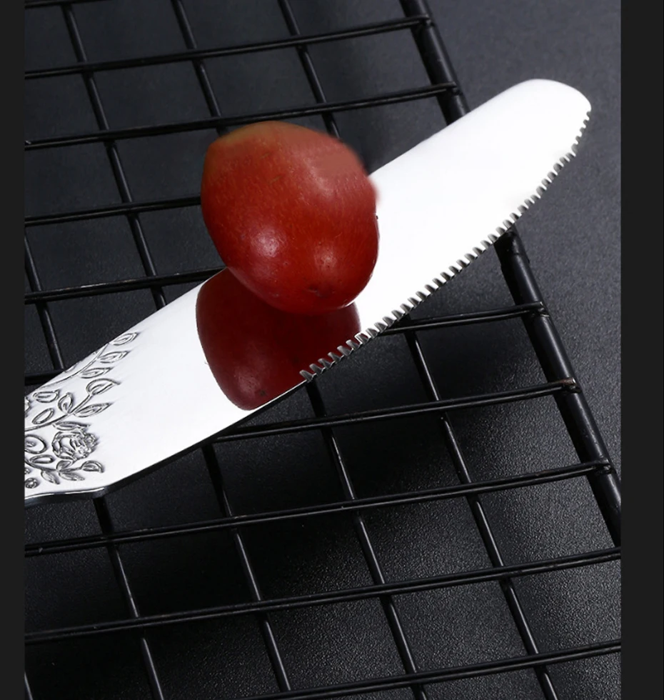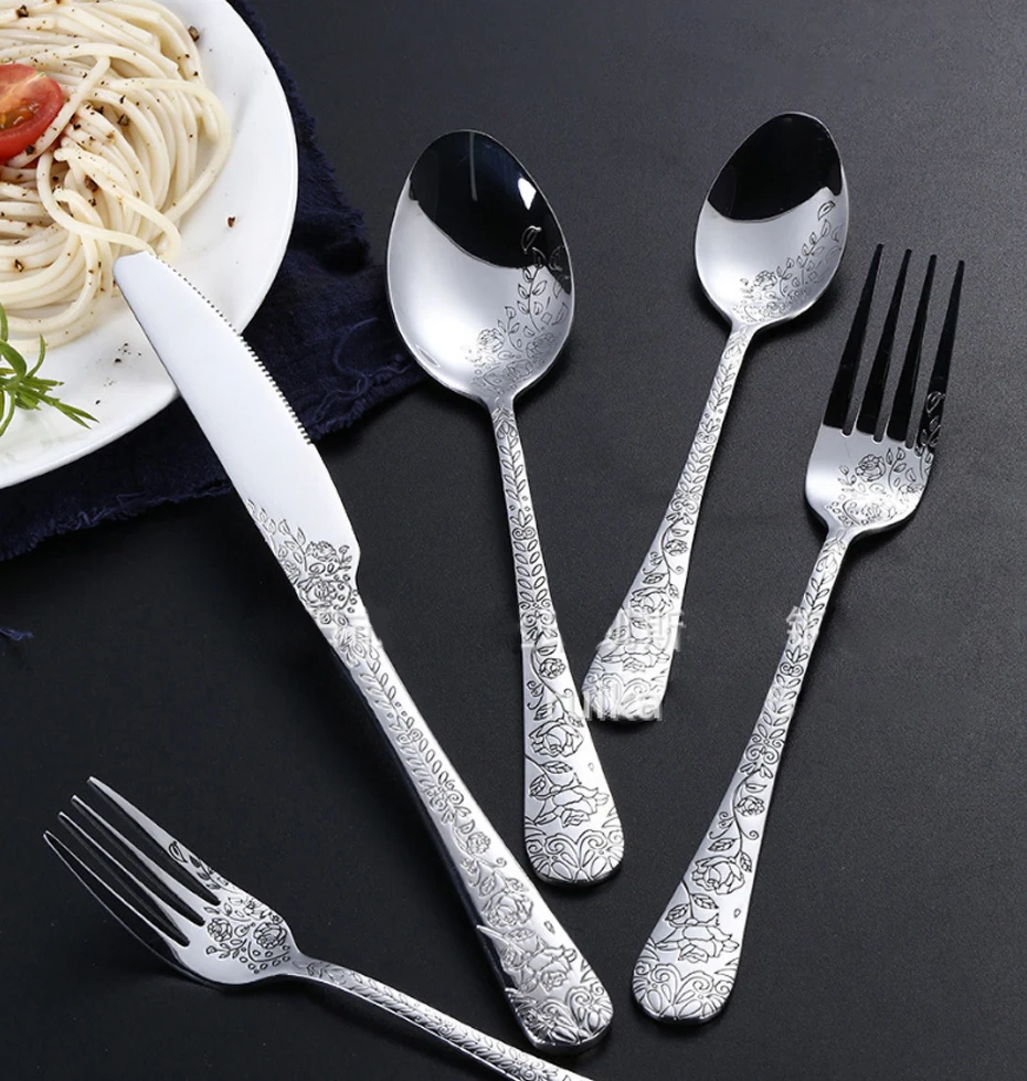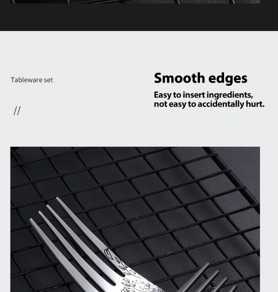 Le curve delle maniglie sono progettate per adattarsi alla tua mano, regalarti una sensazione liscia senza scivolare. I bordi del coltello e della forchetta sono lisci, senza piccoli urti per graffiare la pelle delle mani e della bocca. Anche il peso perfetto. Non troppo pesante e non troppo leggero.