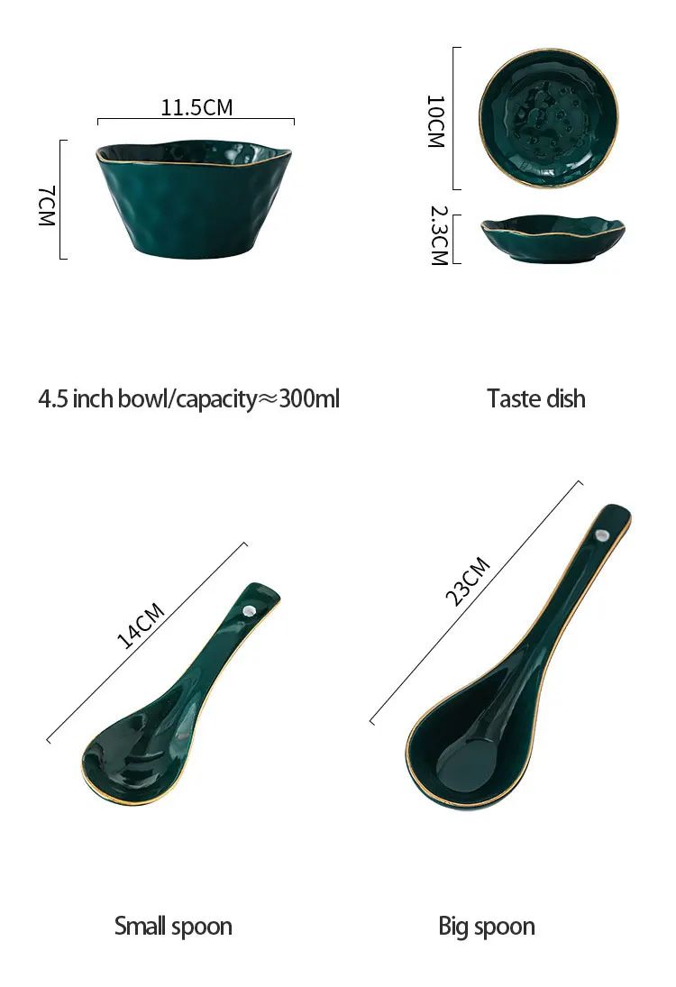 Set di stoviglie con piatti in ceramica nordico verde di alta moda Set di stoviglie Set di ciotole per zuppa in porcellana Stile moderno all’ingrosso
