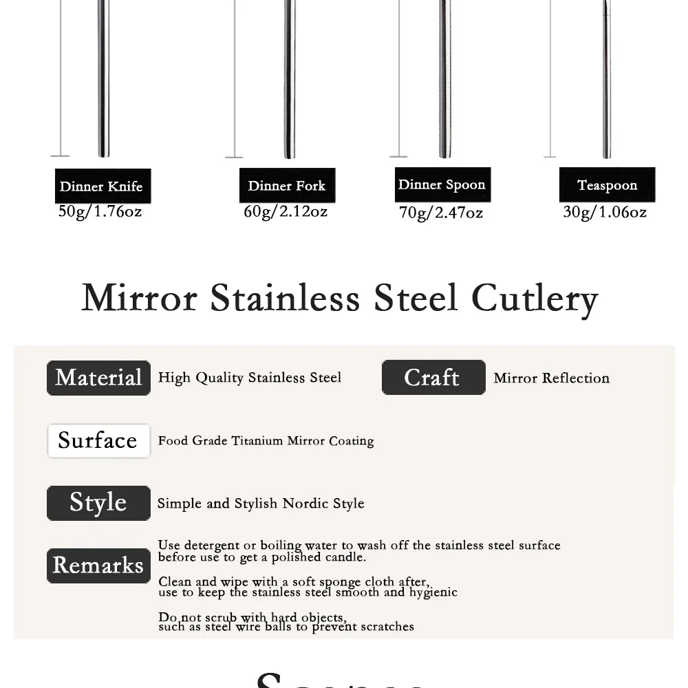 Set di stoviglie Set di posate per stoviglie in argento Specchio di alta qualità Coltello in acciaio inossidabile 304 Forchetta Cucchiaino da caffè Posate PosatePensa ad un Regalo Unico e Utile per le Persone a te Vicine!! Regala un buono a partire da € 10,00 a € 300,00