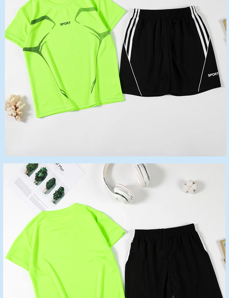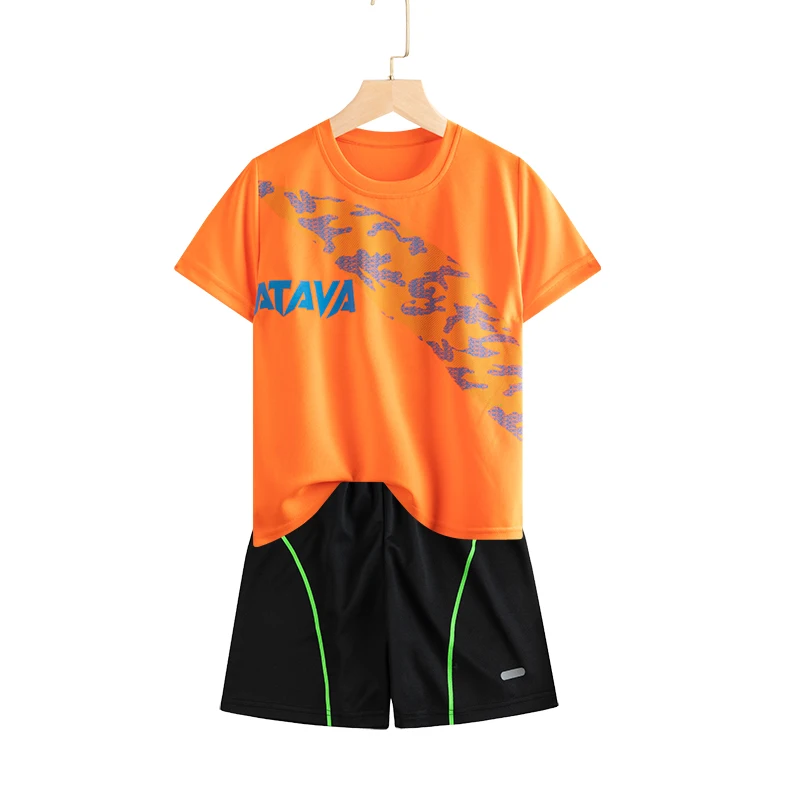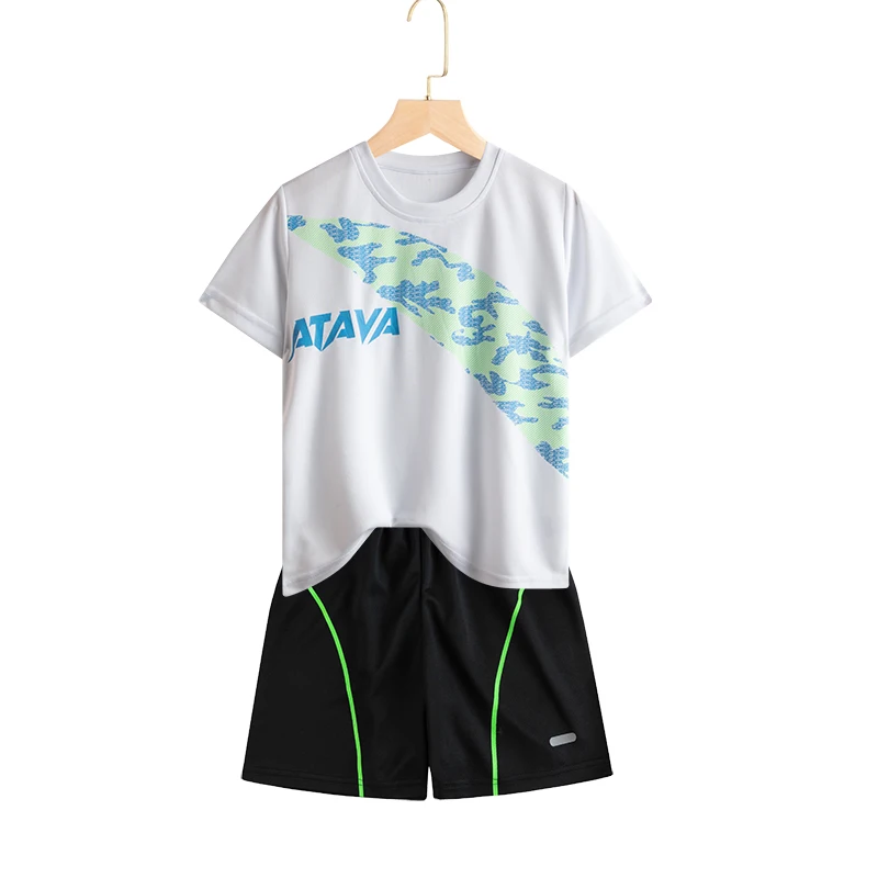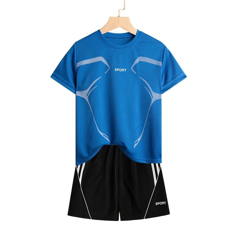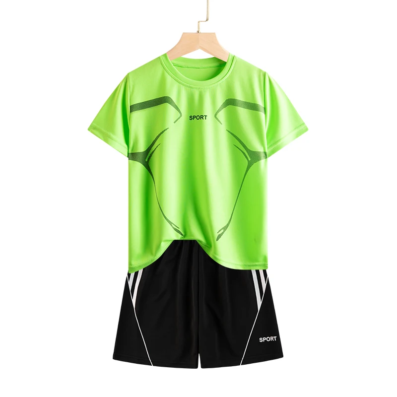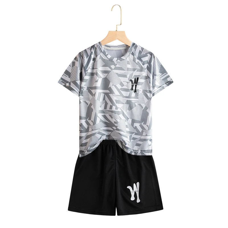 Set di vestiti da corsa per bambini doppiati Maglia da calcio per ragazzi Manica corta Divise da allenamento sportivo per bambini Maglie da calcio Set da 2 pezzi