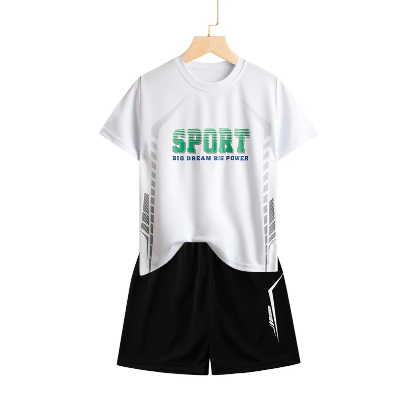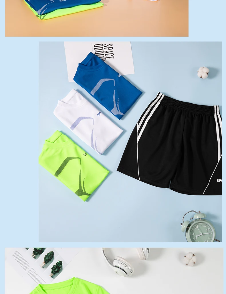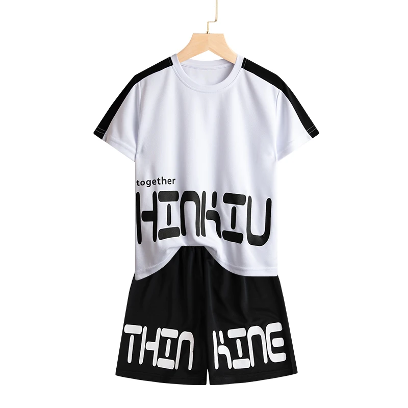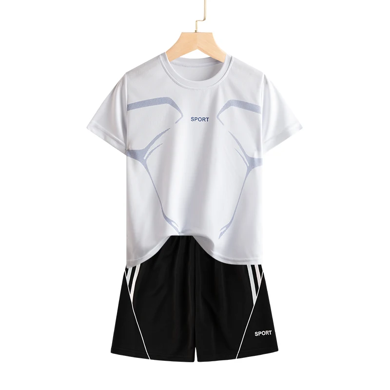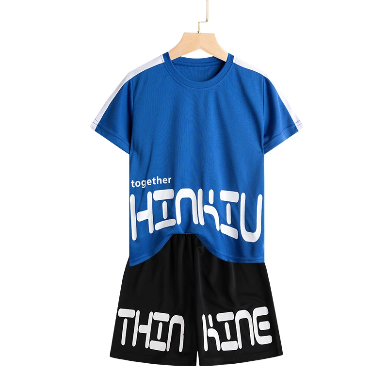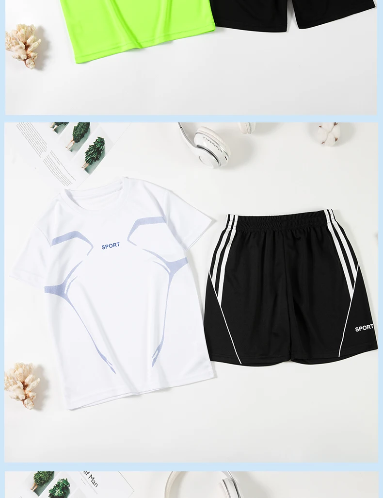 Set di vestiti da corsa per bambini doppiati Maglia da calcio per ragazzi Manica corta Divise da allenamento sportivo per bambini Maglie da calcio Set da 2 pezzi