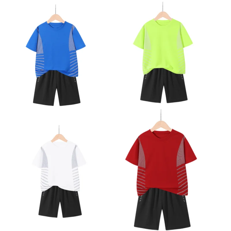 Set di vestiti da corsa per bambini doppiati Maglia da calcio per ragazzi Manica corta Divise da allenamento sportivo per bambini Maglie da calcio Set da 2 pezzi