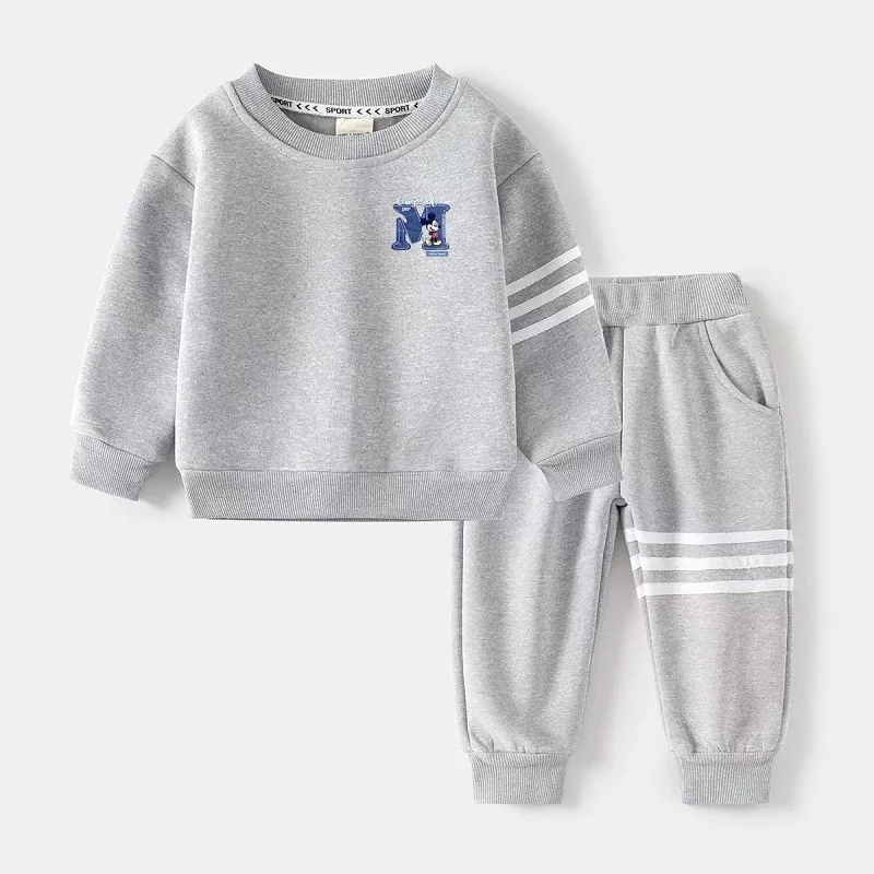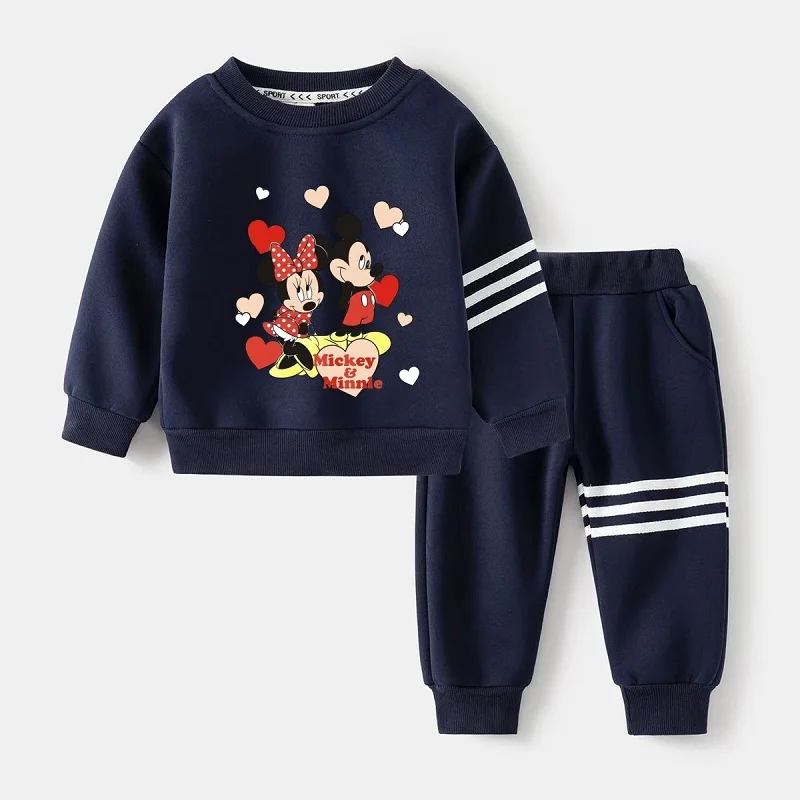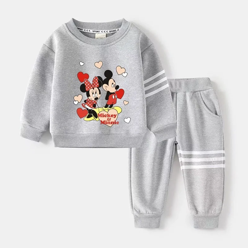 Set di vestiti per bambina autunnale per bambini Felpa con stampa Disney Topolino Top e pantaloni inferiori Tuta da 2 pezzi in cotone