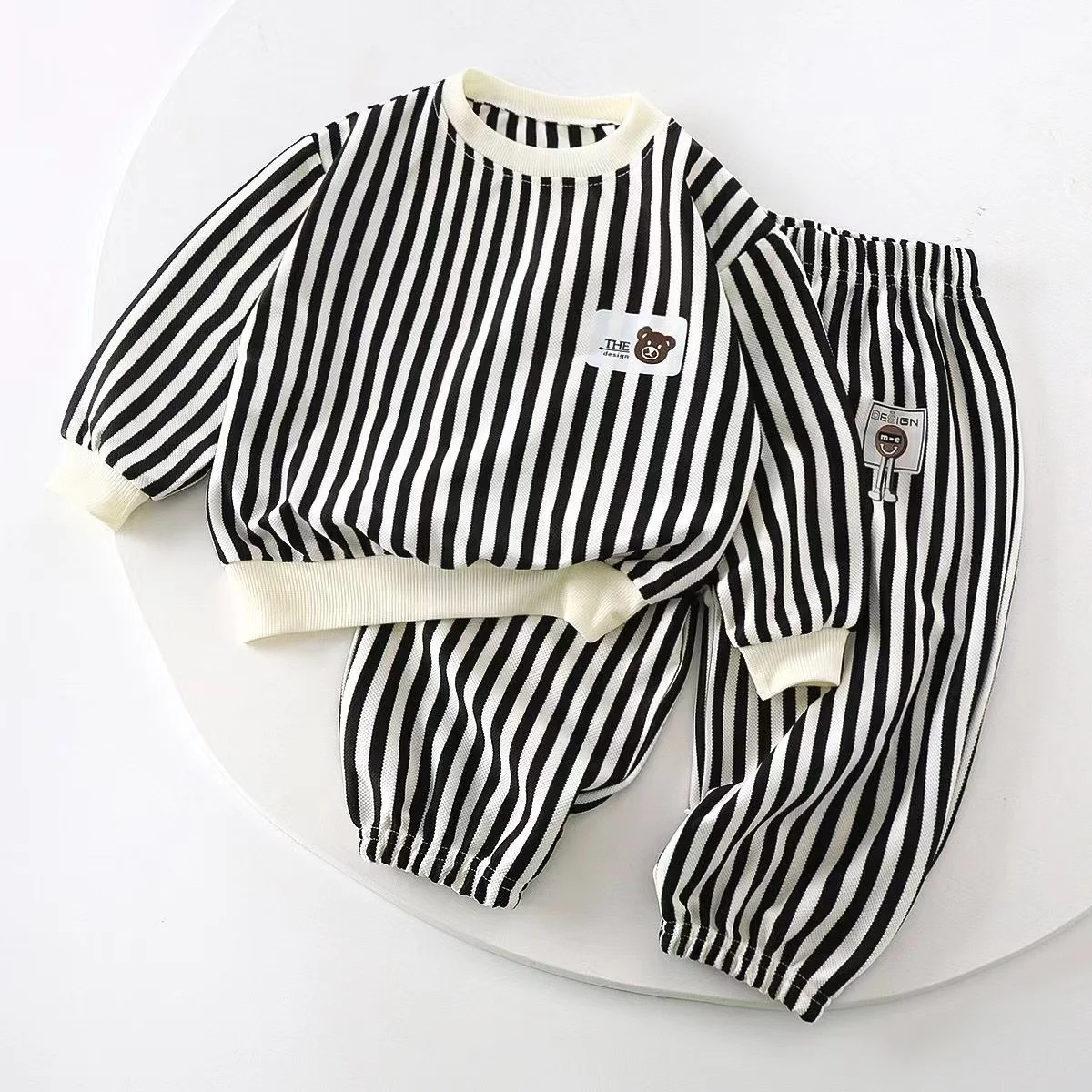 Set di vestiti per bambini autunnali per bambini Felpe a righe per ragazze per bambini Pullover Top e pantaloni Tute a maniche lunghe da 2 pezzi