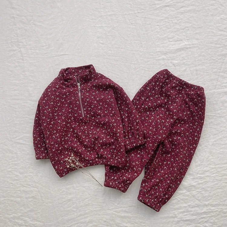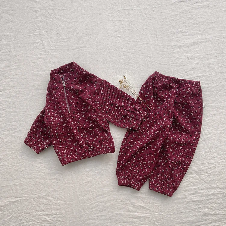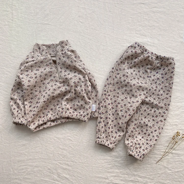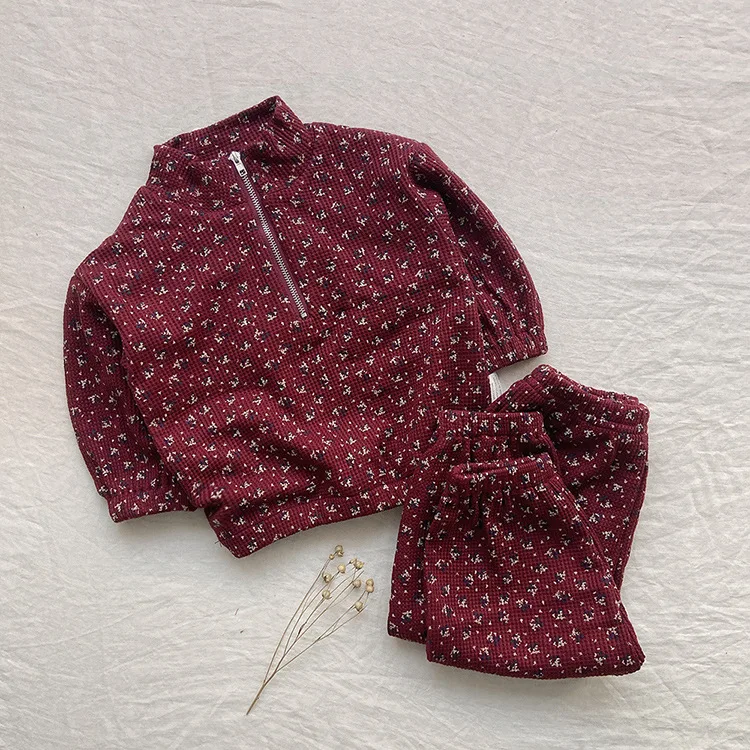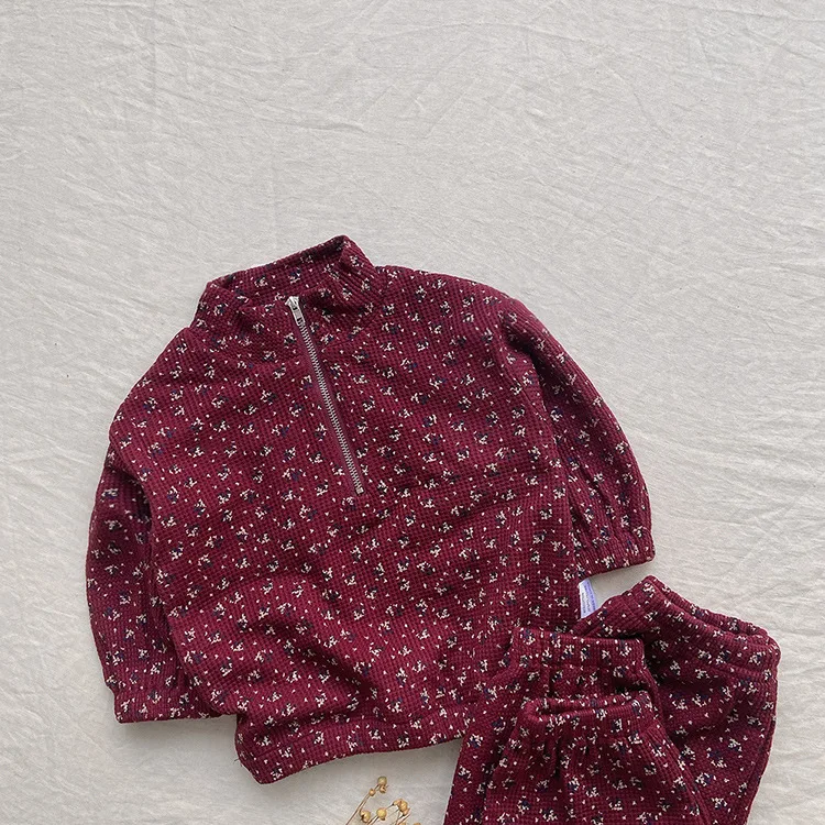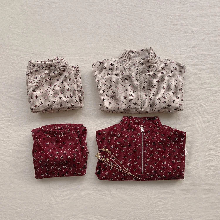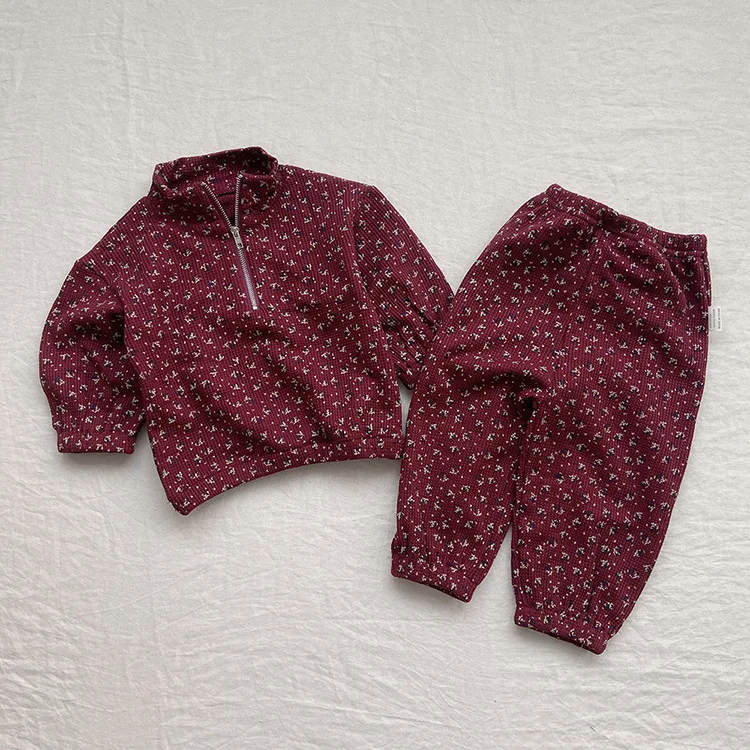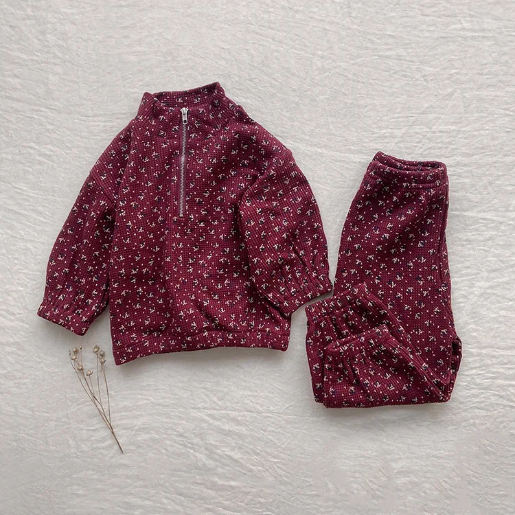 ### Punti salienti del set di waffle in cotone per bambini 1.**Tessuto waffle di cotone morbido**: Realizzato in waffle traspirante e accogliente – cotone strutturato.Perfetto per bambini da 1 a 5 anni, garantisce comfort per l’uso quotidiano e le gite. 2.**Design floreale retrò e mezza zip**: motivi floreali vintage, felpe con mezza zip e pantaloni abbinati.Aggiunge un’atmosfera elegante e nostalgica: si distingue per look casual. 3. **Versatilità facile da abbinare**: ideale per la primavera/autunno. Il set coordinato semplifica l’abbigliamento, la combinazione e l’abbinamento amichevole, consentendo ai bambini di muoversi liberamente in uno stile carino e retrò.