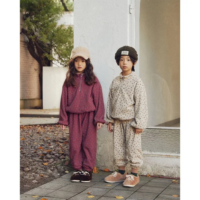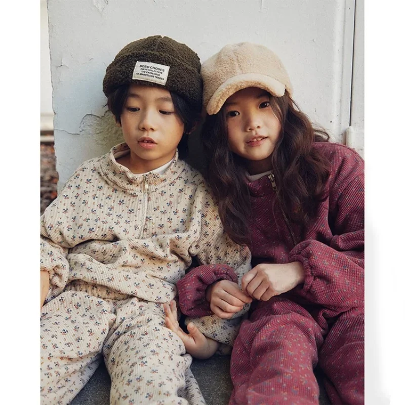 ### Punti salienti del set di waffle in cotone per bambini 1.**Tessuto waffle di cotone morbido**: Realizzato in waffle traspirante e accogliente – cotone strutturato.Perfetto per bambini da 1 a 5 anni, garantisce comfort per l’uso quotidiano e le gite. 2.**Design floreale retrò e mezza zip**: motivi floreali vintage, felpe con mezza zip e pantaloni abbinati.Aggiunge un’atmosfera elegante e nostalgica: si distingue per look casual. 3. **Versatilità facile da abbinare**: ideale per la primavera/autunno. Il set coordinato semplifica l’abbigliamento, la combinazione e l’abbinamento amichevole, consentendo ai bambini di muoversi liberamente in uno stile carino e retrò.