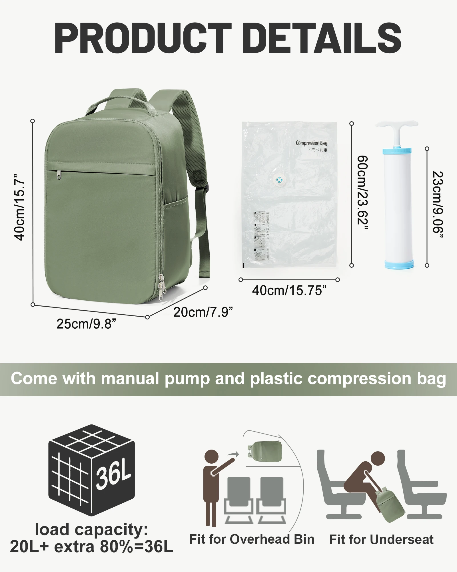 Set di zaini da viaggio da viaggio a compressione sottovuoto aziendale 40 * 25 * 20 con pompa manuale per aereo da portare con sé + vano portaoggetti nascosto