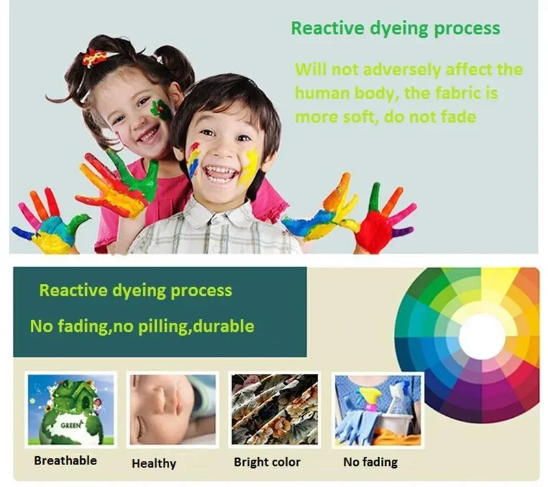 1.Tessuti morbidi e delicati sulla pelle.stampa reattiva, colore brillante, nessuna sbiadimento.