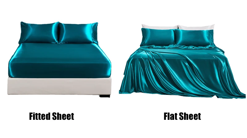 Set lenzuolo estivo in raso di seta di lusso (lenzuolo piatto + lenzuolo con angoli + federa) Coprimaterasso tinta unita Twin Full Queen
