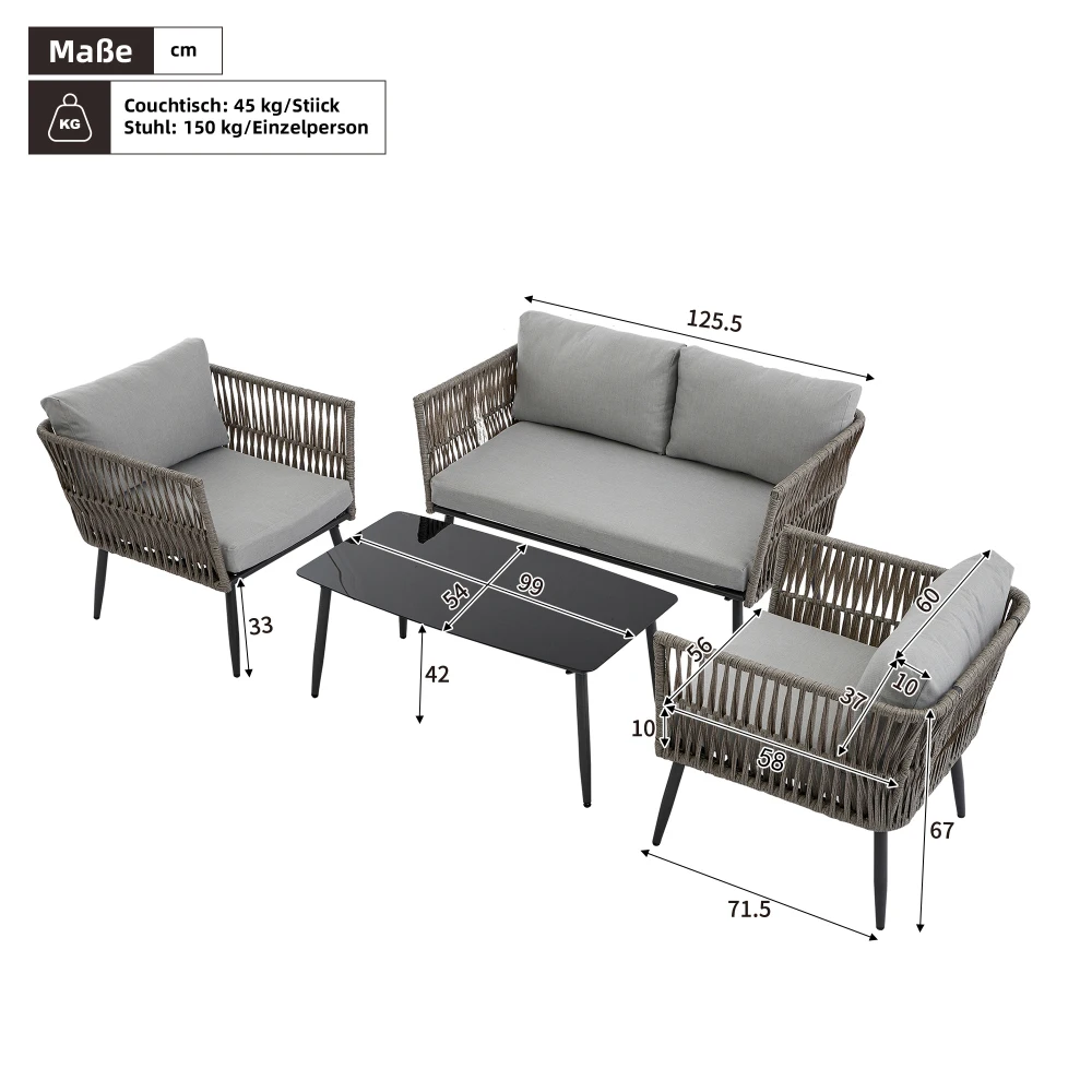 Einfache kombinting, flessibile Abstimmung – bestehend aus einem Doppelsofa, zwei Einzelsofas und einem Couchtisch aus Glas. Die kombinting ist kompakt und praktisch, eignet sich fur verschiedene muslimie Terrassen, Balkone oder gparten und lasse sst sich ganz einfach in eine gementliche und entspannende eceln.