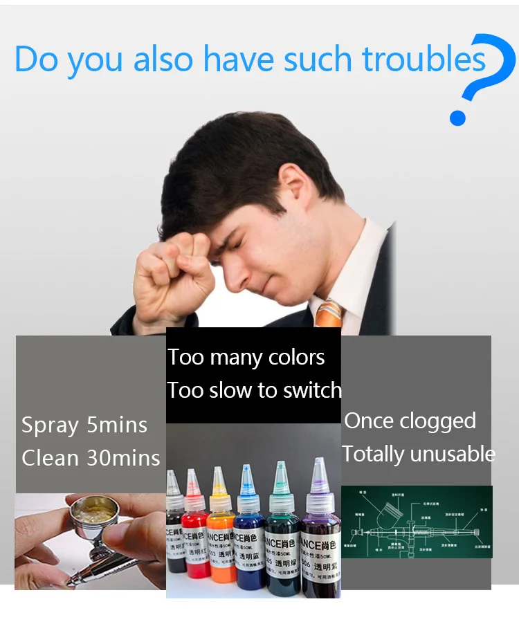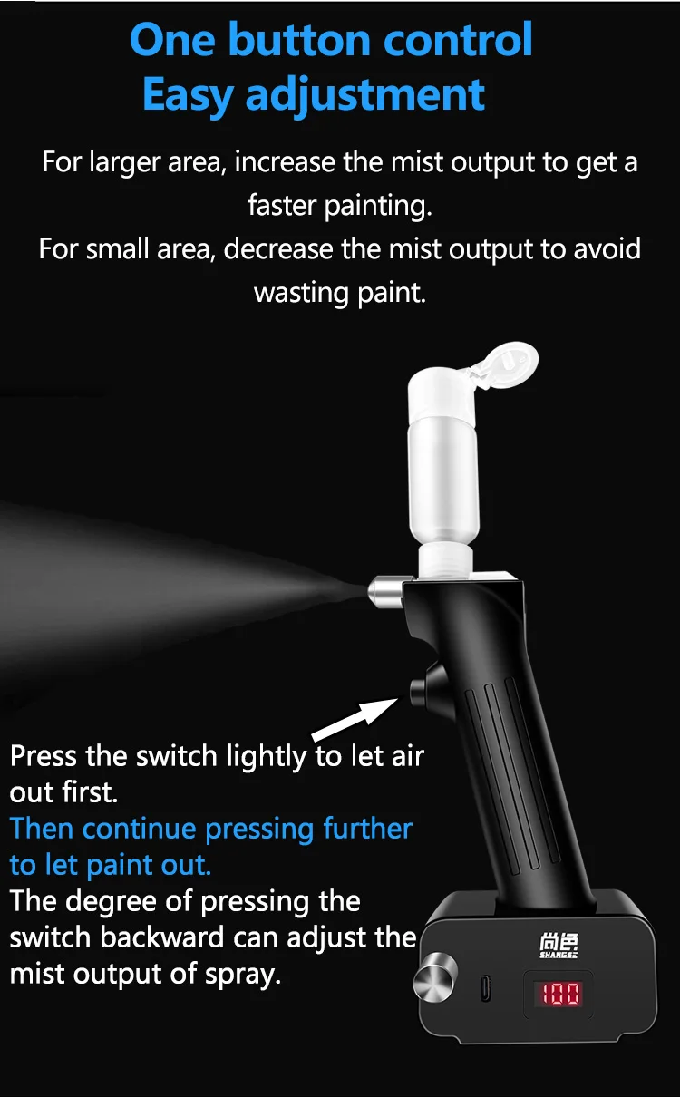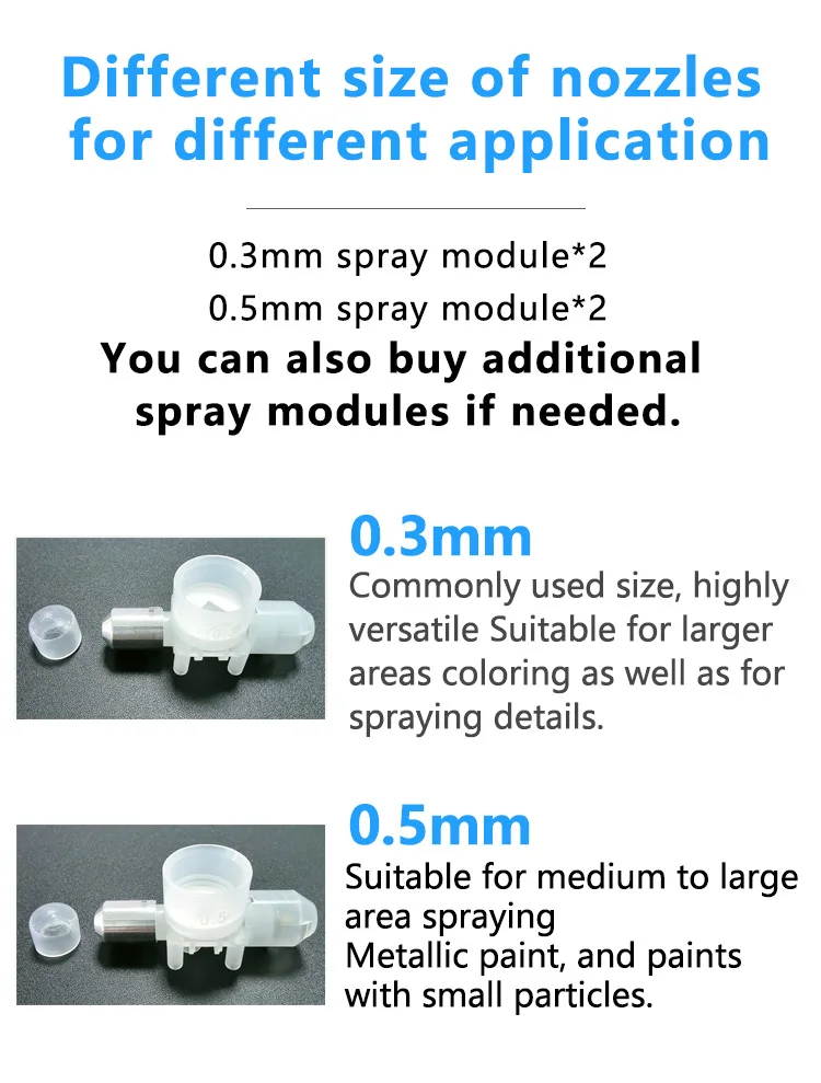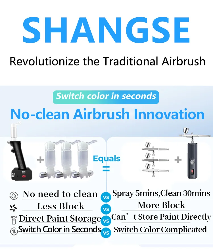 SHANGSE Aggiornato No Clean Aerografo con modulo spray da 0,3 e 0,5 mm Strumento di pittura portatile per modello di tatuaggio Decorazione torta Hobby fai da te