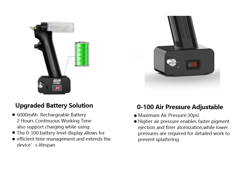 SHANGSE Kit aerografo non pulito-30PSI Strumenti portatili ricaricabili a spruzzo rapido senza fili per il restauro di mobili di verniciatura di modelliDisponibilità: 13 disponibili