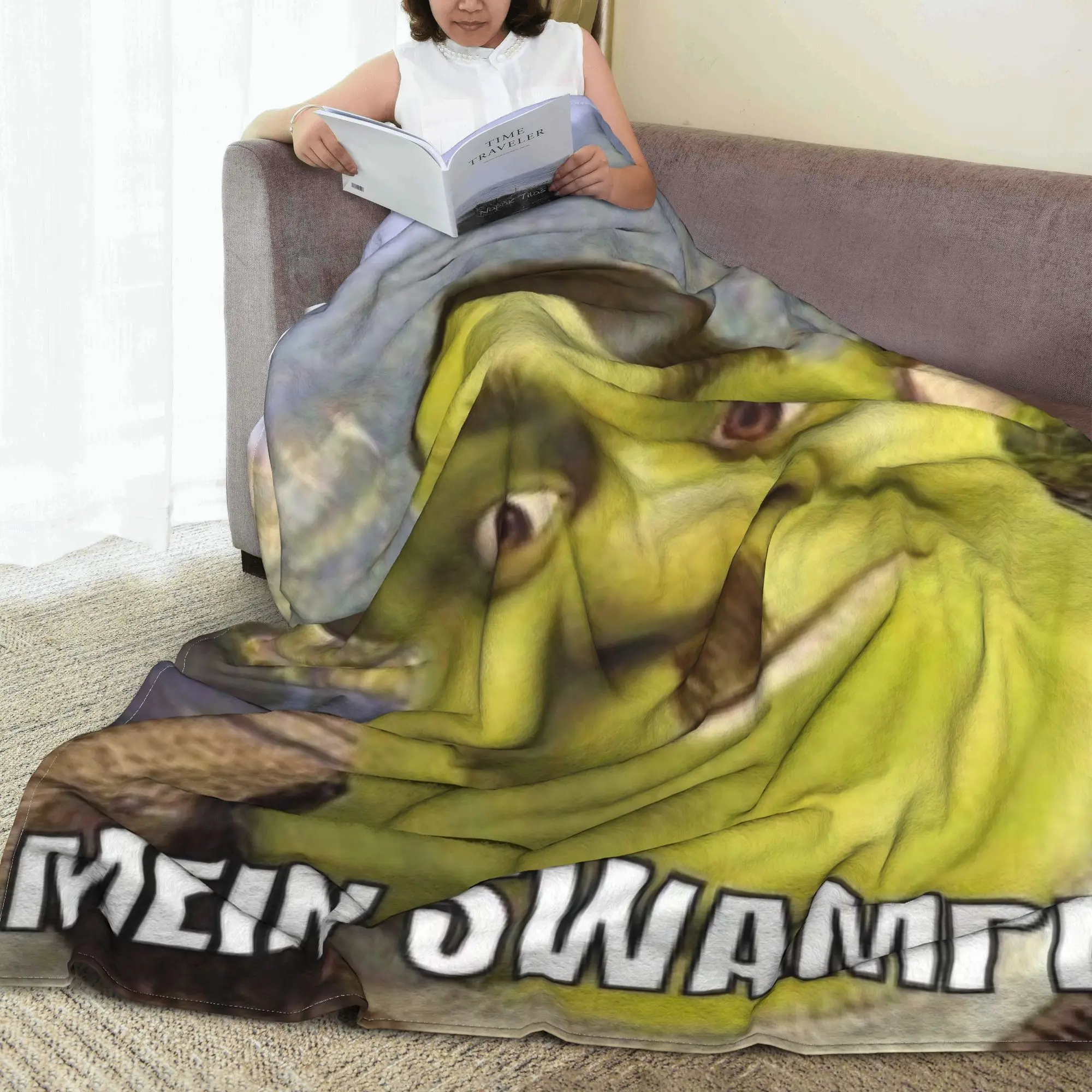 Shreks Pun Funny Memes Coperta con stampa in velluto, traspirante, ultra morbida, per tappeto da viaggio a casa