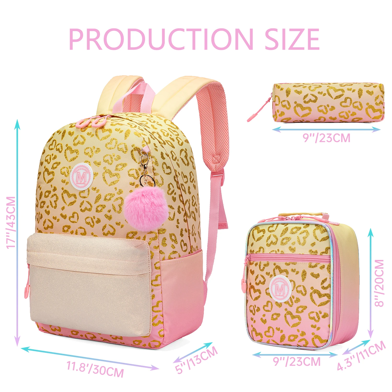♥Zaini per ragazze Taglia: Zaino: 17”X11,8”X5”, Borsa per il pranzo: 9”X8”X4,3”, Astuccio: 9”
