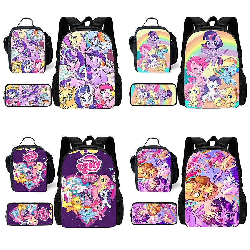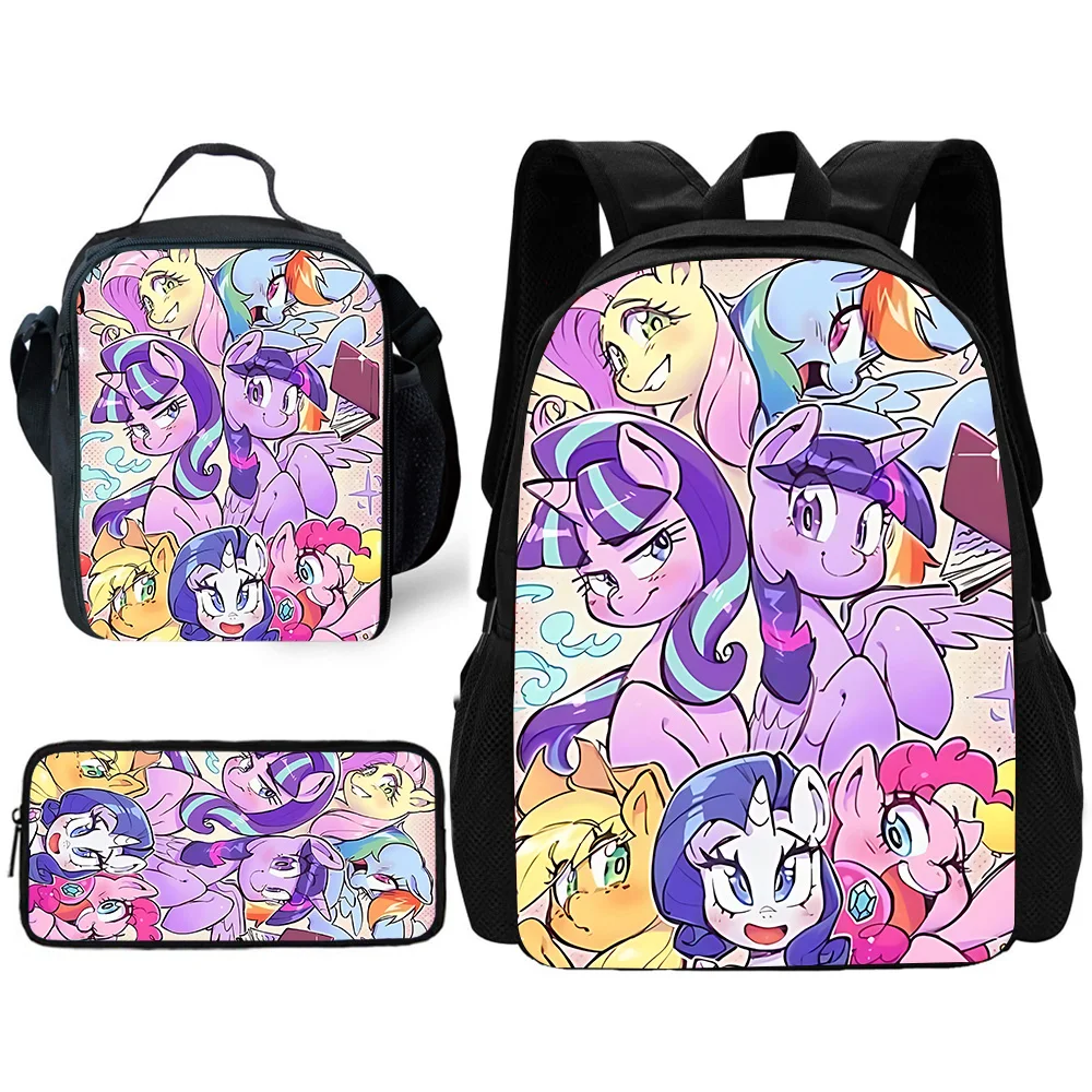 Simpatico cartone animato My litles Ponys zaino da scuola per bambini con borse per il pranzo, borse a matita, borse da scuola per ragazze dei ragazzi miglior regalo 1Simpatico cartone animato My litles Ponys zaino da scuola per bambini con borse per il pranzo, borse a matita, borse da scuola per ragazze dei ragazzi miglior regalo