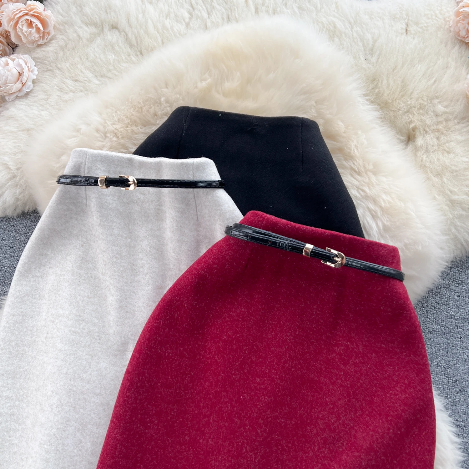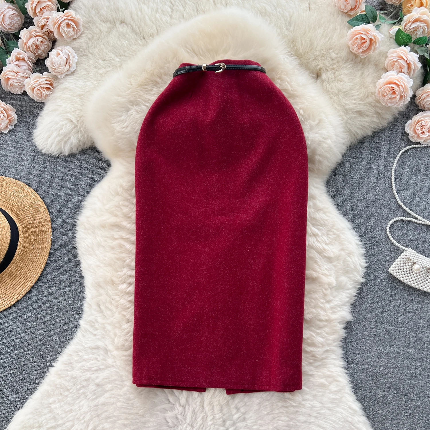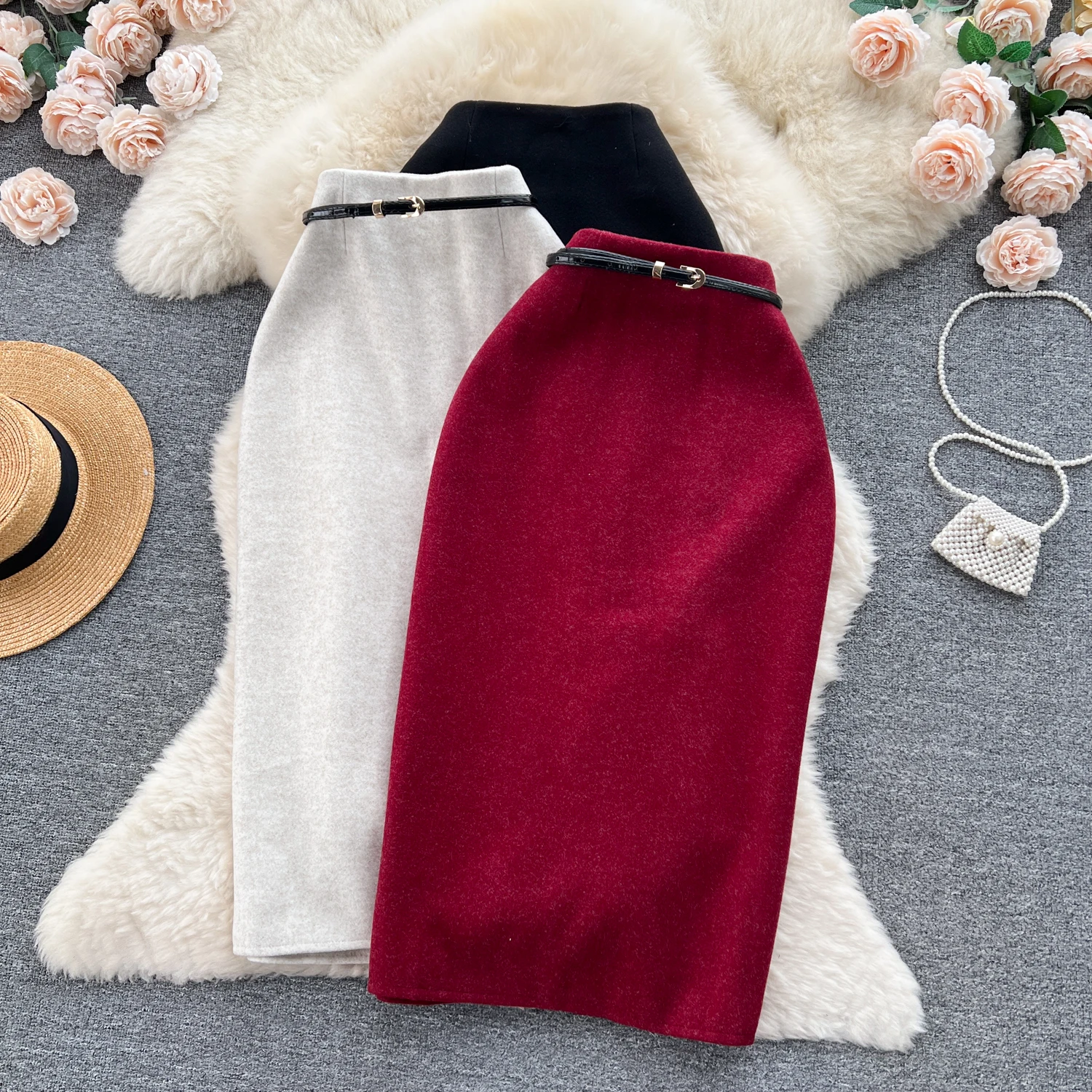 SINGREINY Gonna lunga sexy divisa francese Inverno Vita alta Sottile Spessore Streetwear Office Ladies 2025 Autunno Vintage Gonna aderente