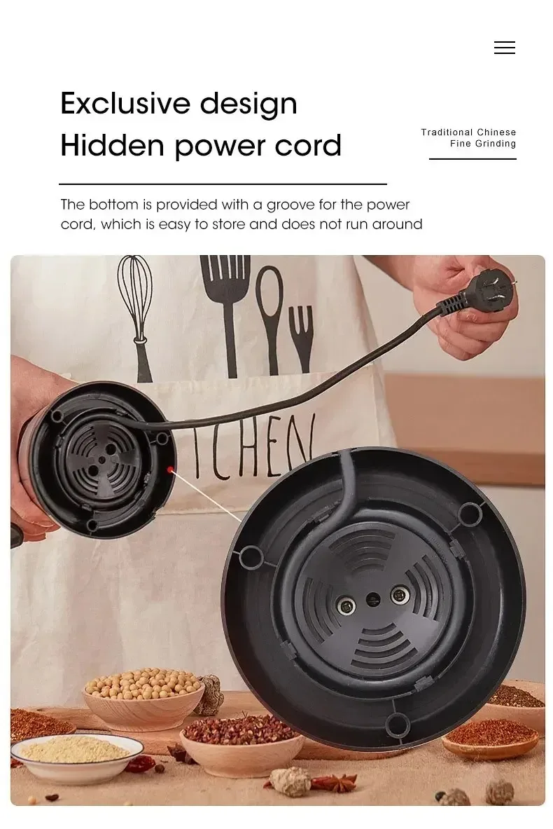 Può essere utilizzato per macinare vari ingredienti come cereali, chicchi di caffè, spezie, erbe aromatiche, noci, cereali, mais, per soddisfare le esigenze di macinazione quotidiane.