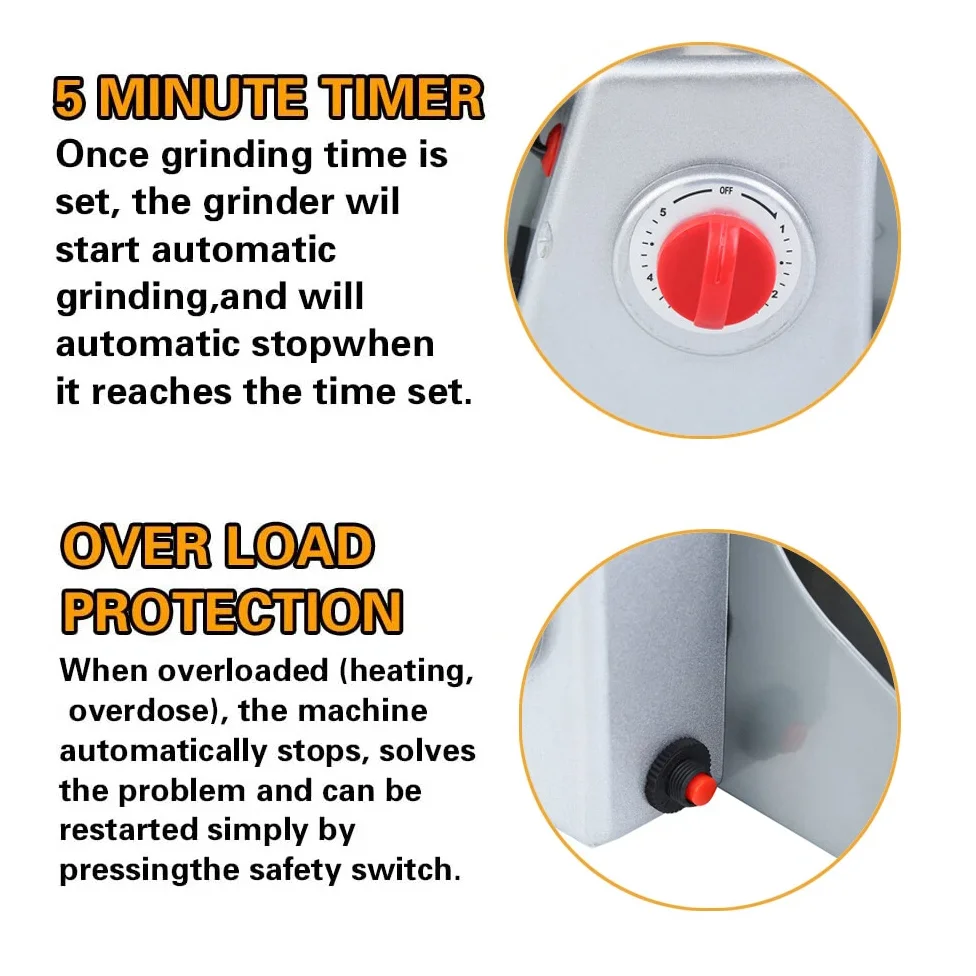 ✅Protezione da sovraccarico e interruttore timer da 0-6 minuti – Se il macinapepe è in uno stato sovraccarico/surriscaldato, la protezione da sovraccarico inizia automaticamente ad interrompere l’operazione.È facile da risolvere sostituendo le spazzole di carbone su entrambi i lati e quindi premendo nuovamente la protezione da sovraccarico, quindi il mulino potrebbe funzionare bene.
